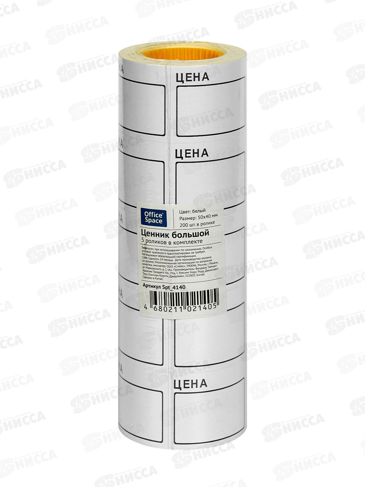 Ценники OfficeSpace большой 50*40мм, 200шт/рул. белый, Spt_4140*5/50
