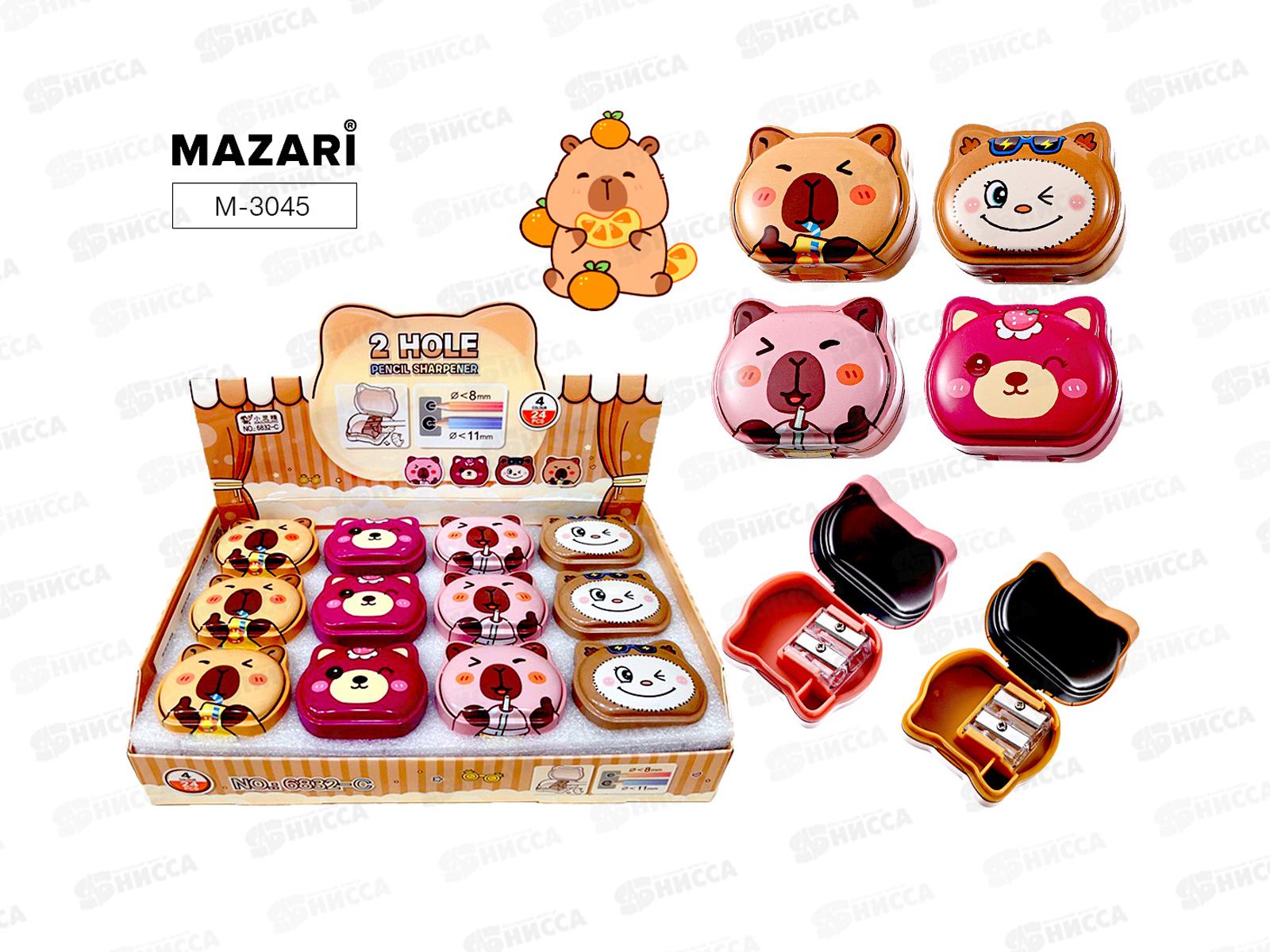 Точилка мет. MAZARI Животные 2 отв. 4 диз. M-3045. *12/192/384
