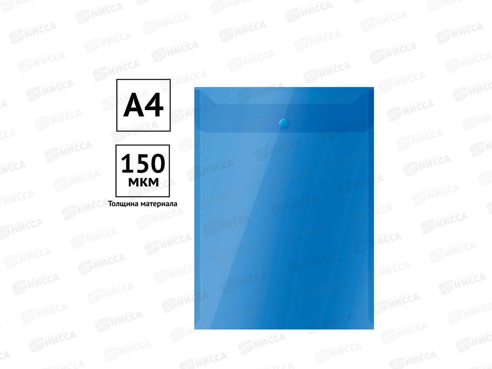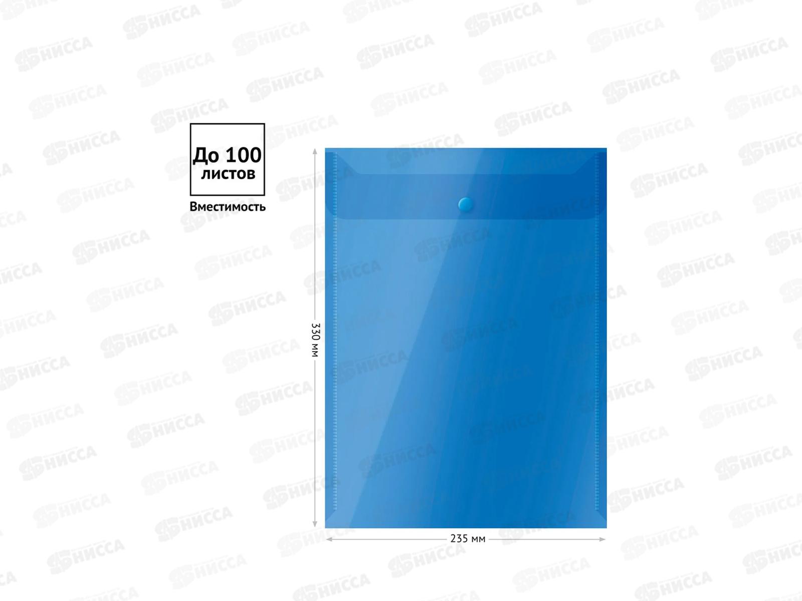 Папка с кнопкой OfficeSpace,А4 150мкм.полупрозрачная синяя вертикальная 267525*10