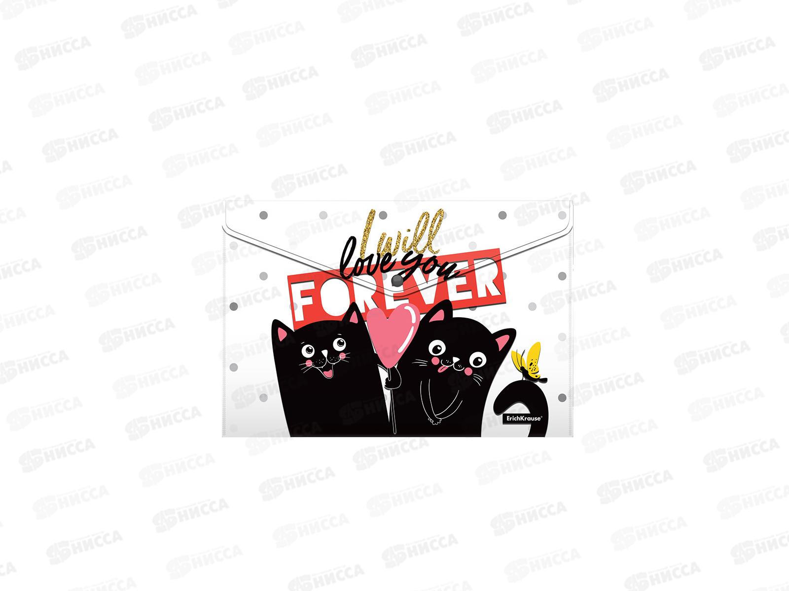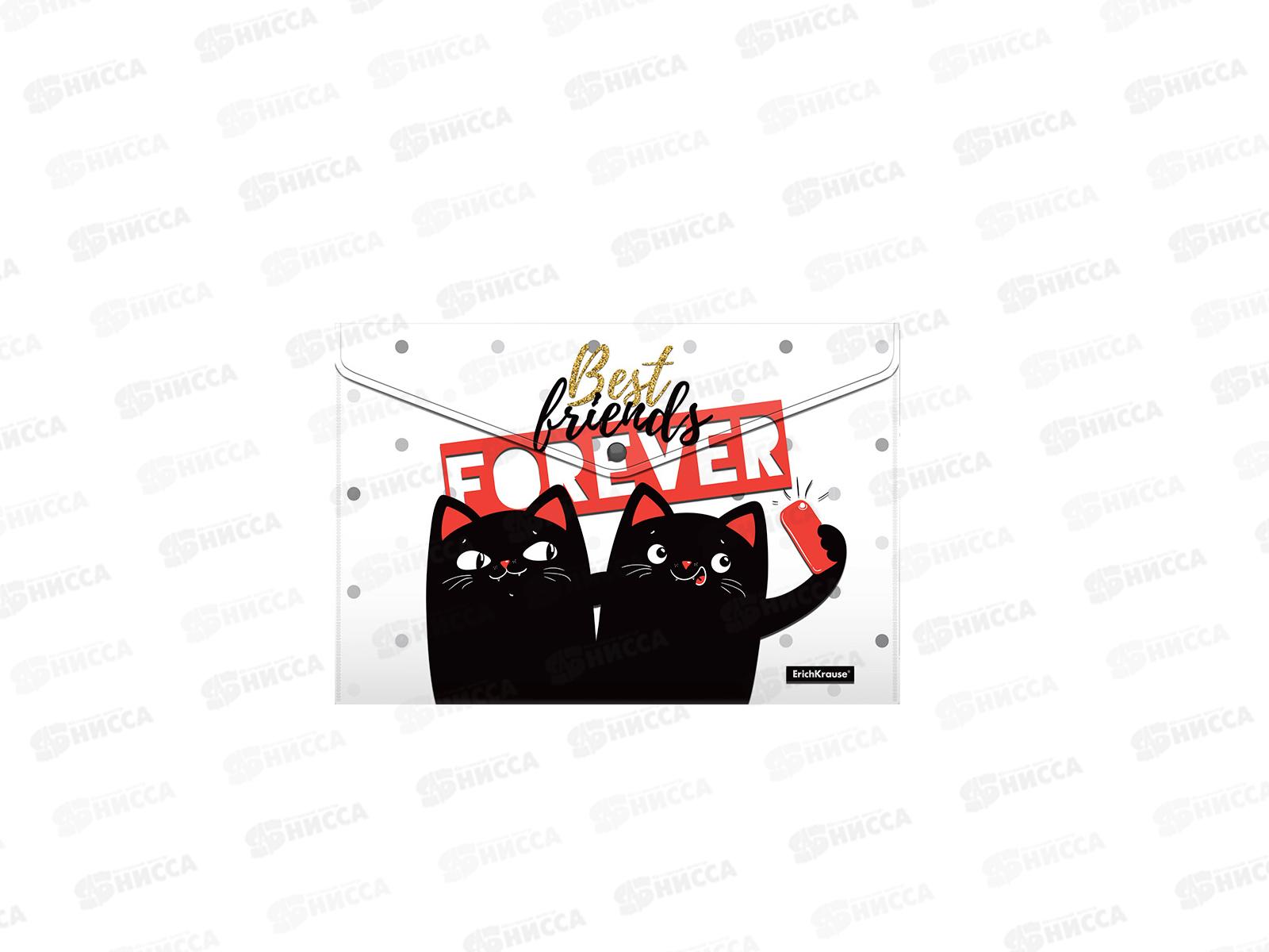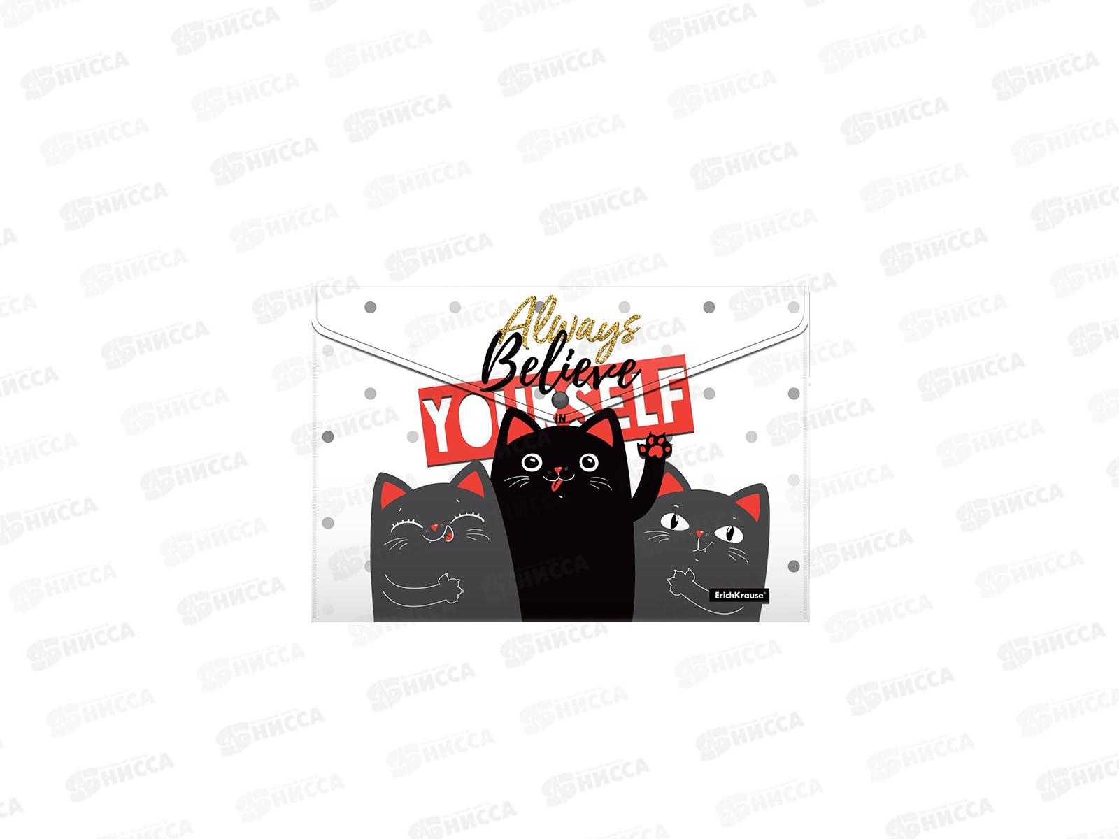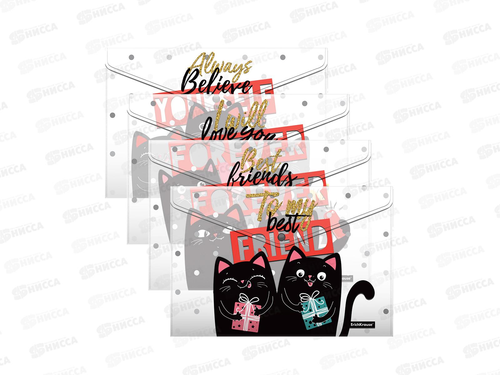Папка-конверт пластиковая на кнопке EK Feline Friends 4шт А4 54903