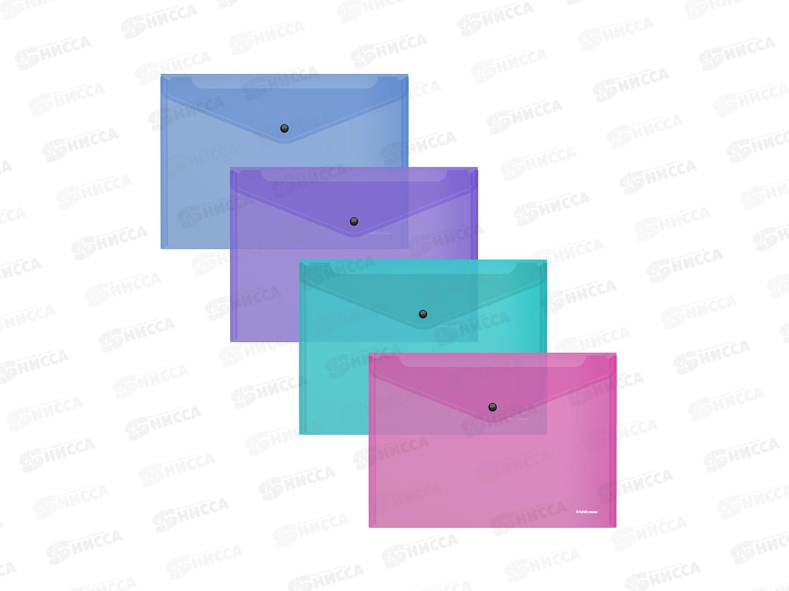 Папка-конверт пластиковая на кнопке EK Glossy Vivid А5+ п/прозр.,асс. 47121