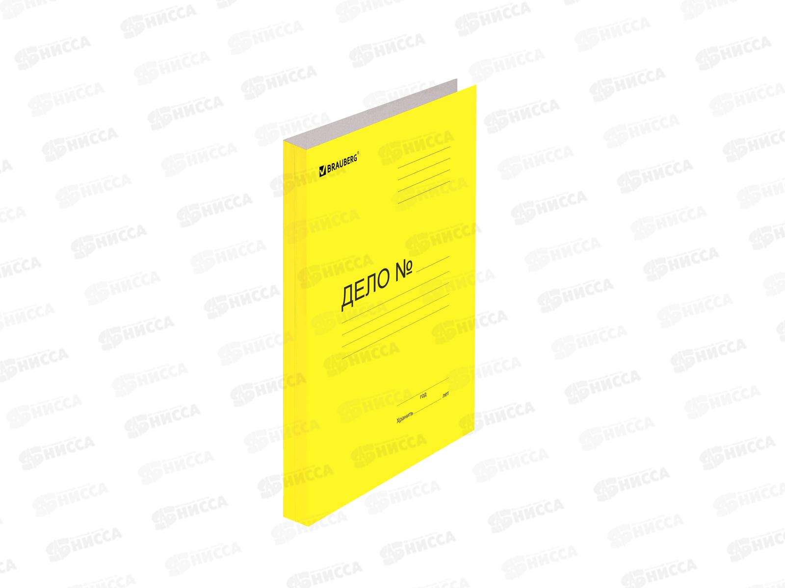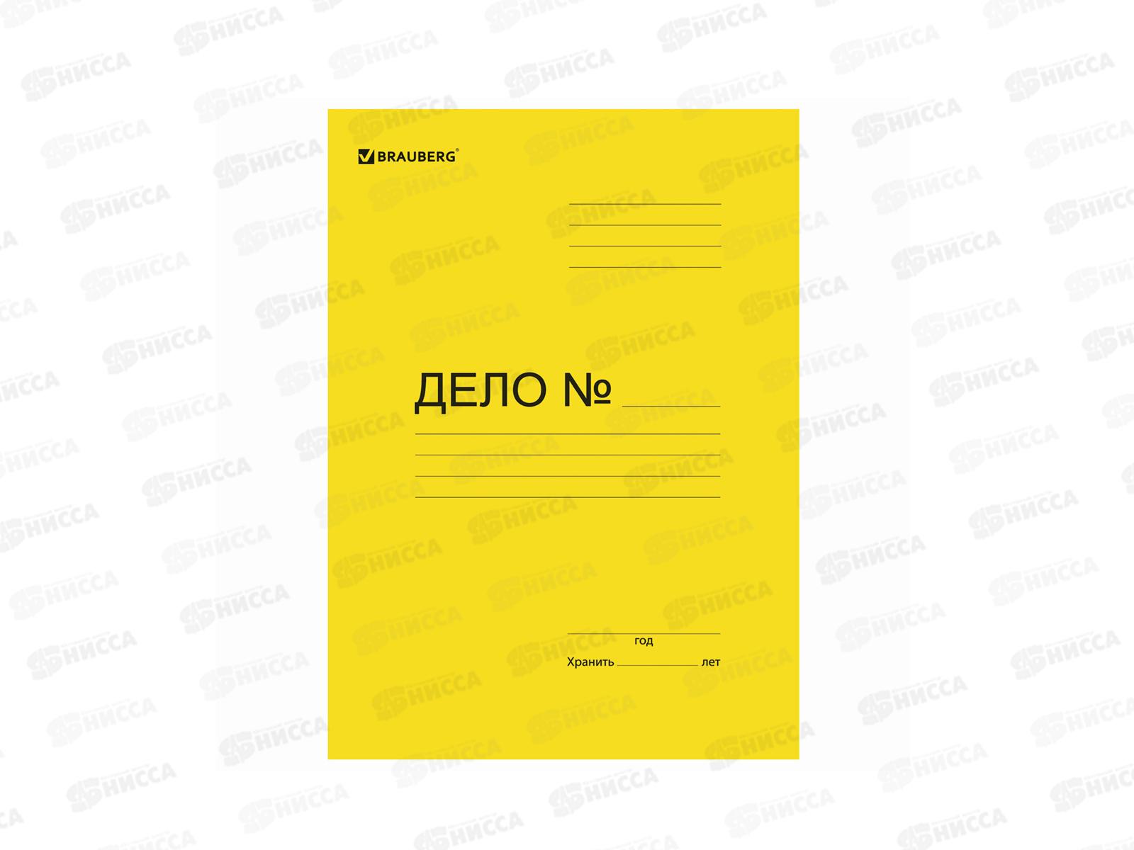Скоросшиватель Brauberg — надежный вариант для систематизации и продолжительного хранения деловой, технической, юридической документации, архивных данных. В нем удобно хранить анкеты и данные сотрудников или клиентов, отчеты и заявления. Подходит для документов формата А4 и меньше. Изготовлен из желтого мелованного картона плотностью 360 г/м2. Оснащен металлическим механизмом сшивания. Вмещает до 200 листов стандартной плотности. Имеет надпись "Дело №" на обложке.