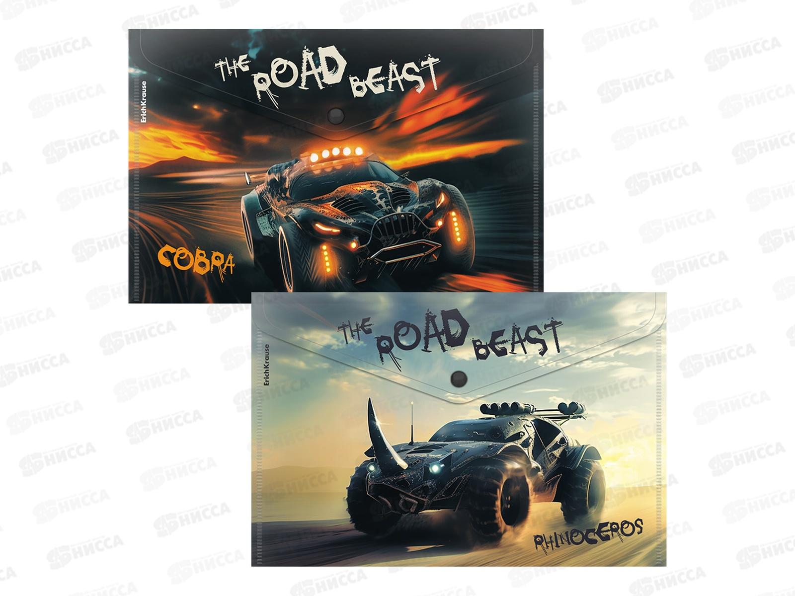 Папка-конверт пл. на кнопке EK Road Beast А4, асс. 63510 *12