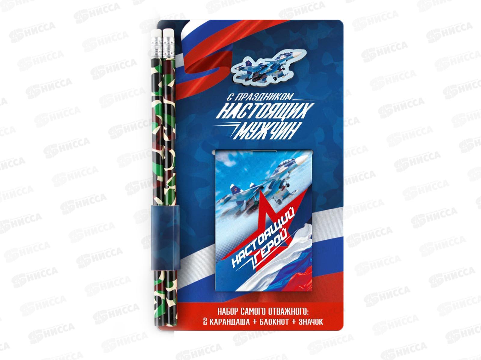 Набор подарочный блокнот карандаши 2шт значок-дерево "С праздником настоящих мужчин" 10645232