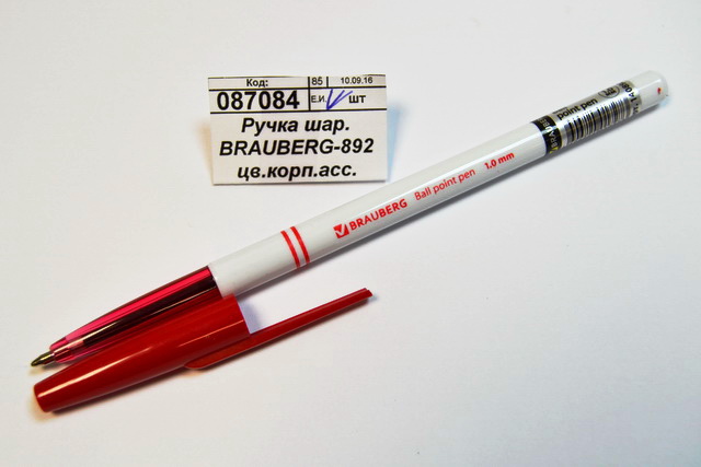 Ручка шариковая BRAUBERG-140892 белый корпус, красная *24/240