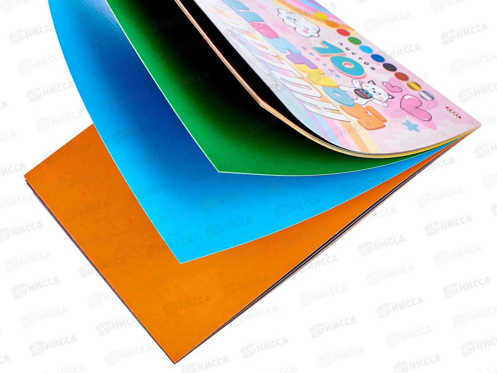 Цветной картон формата А5 идеально подойдет для детского творчества. С его помощью можно создать красивые аппликации и объёмные поделки. Картон плотный, поэтому на нём можно рисовать фломастерами или красками. В набор входит 10 листов: 8 основных цветов и 2 металлизированных листа золотого и серебряного цветов.