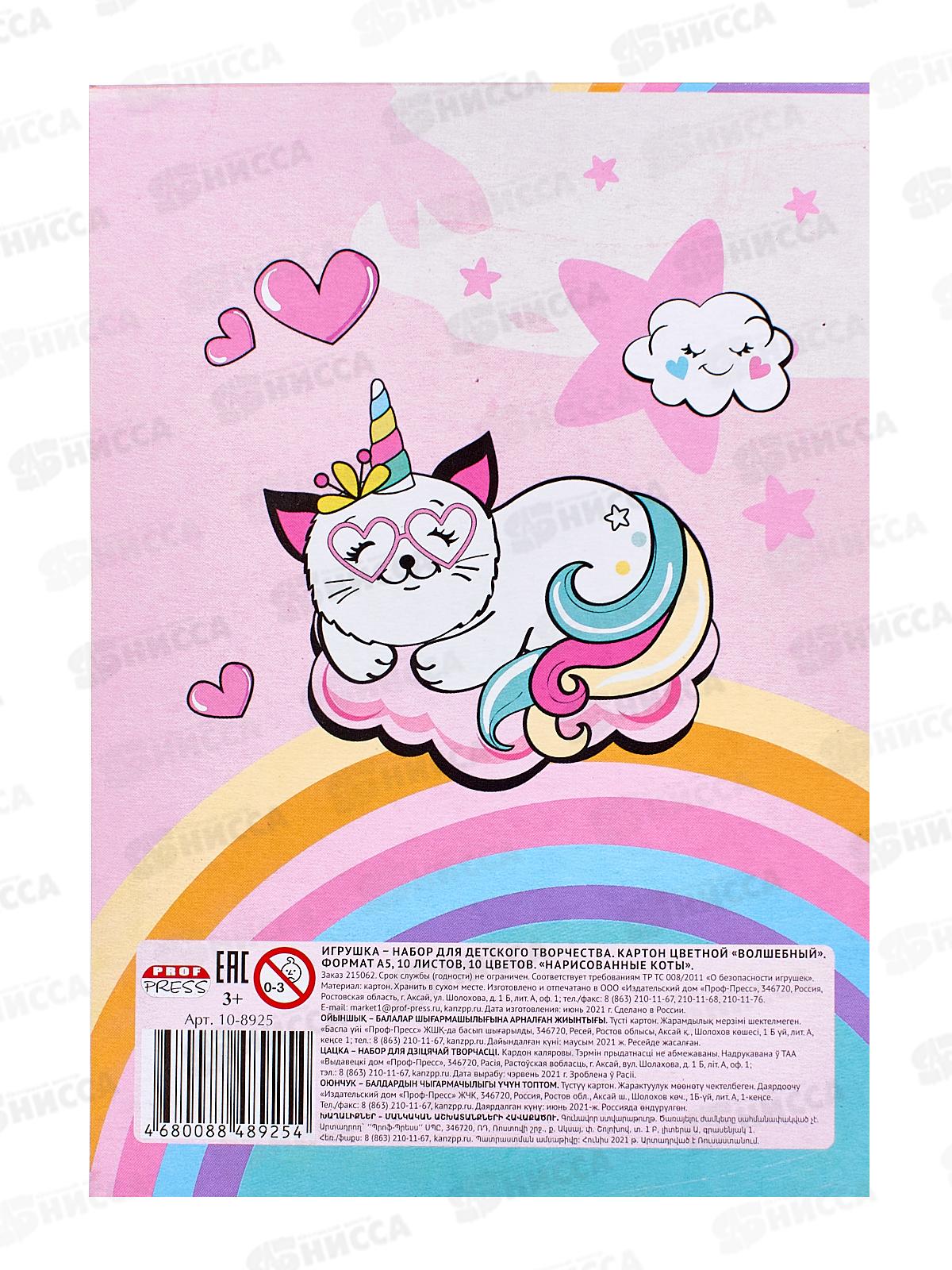Цветной картон ПП "Волшебный" А5 10л Нарисованные коты (10-8925), (8цв.+зол+сер)