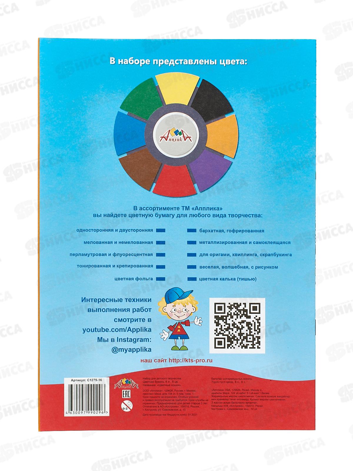 Цветная бумага 8листов 8цветов, Апплика Цветные кошки,С1279-16*60