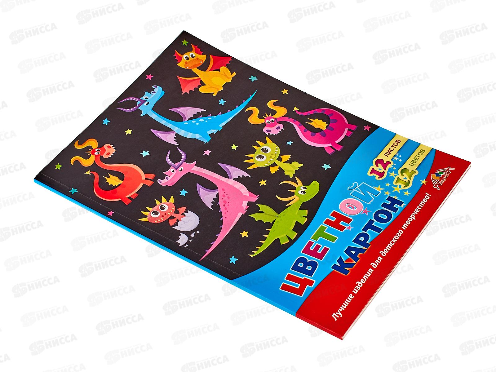 Цветной картон А4 Апплика 12л 12цв.Дракончики, С2801-12*30