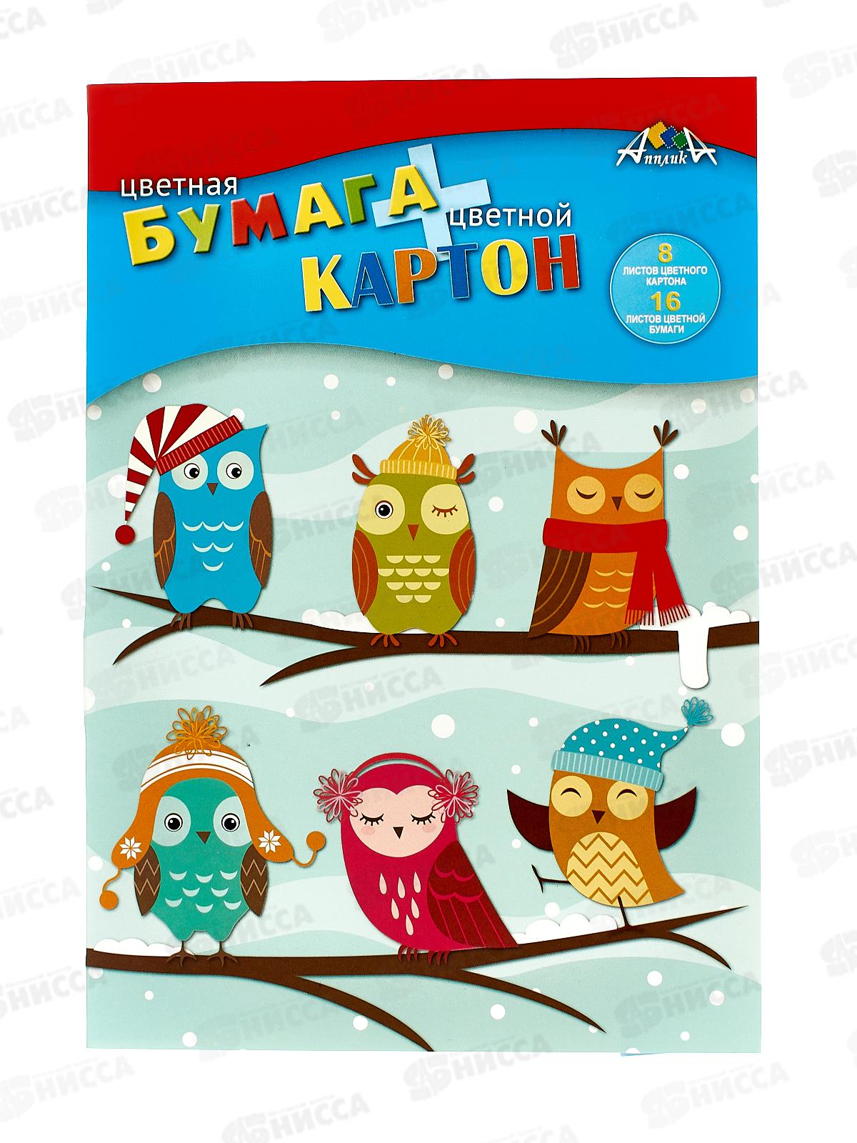 Цветной картон А4 Апплика 8л+ цветная бумага 16цв.Совята, С1832-14 *25