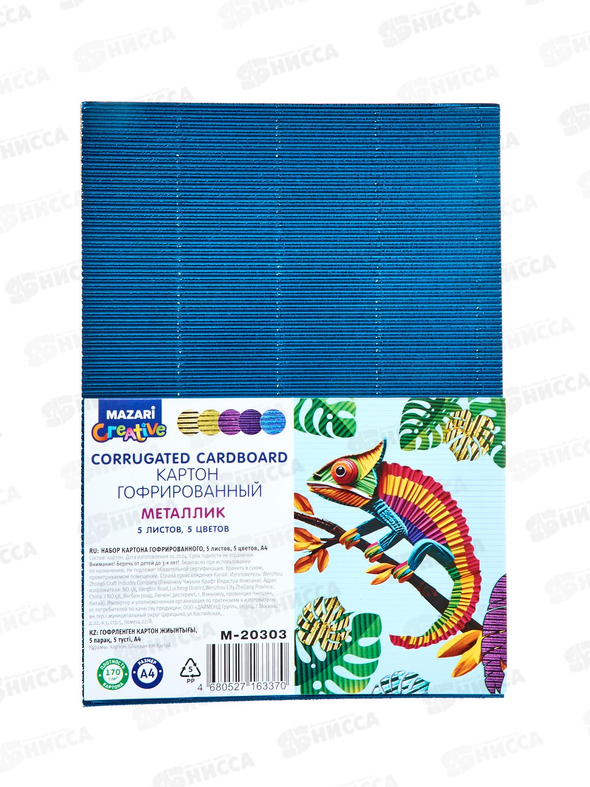 Цветной карт.MAZARI 5л. 5цв, А4 гофрир, цвет металлик, М-20303