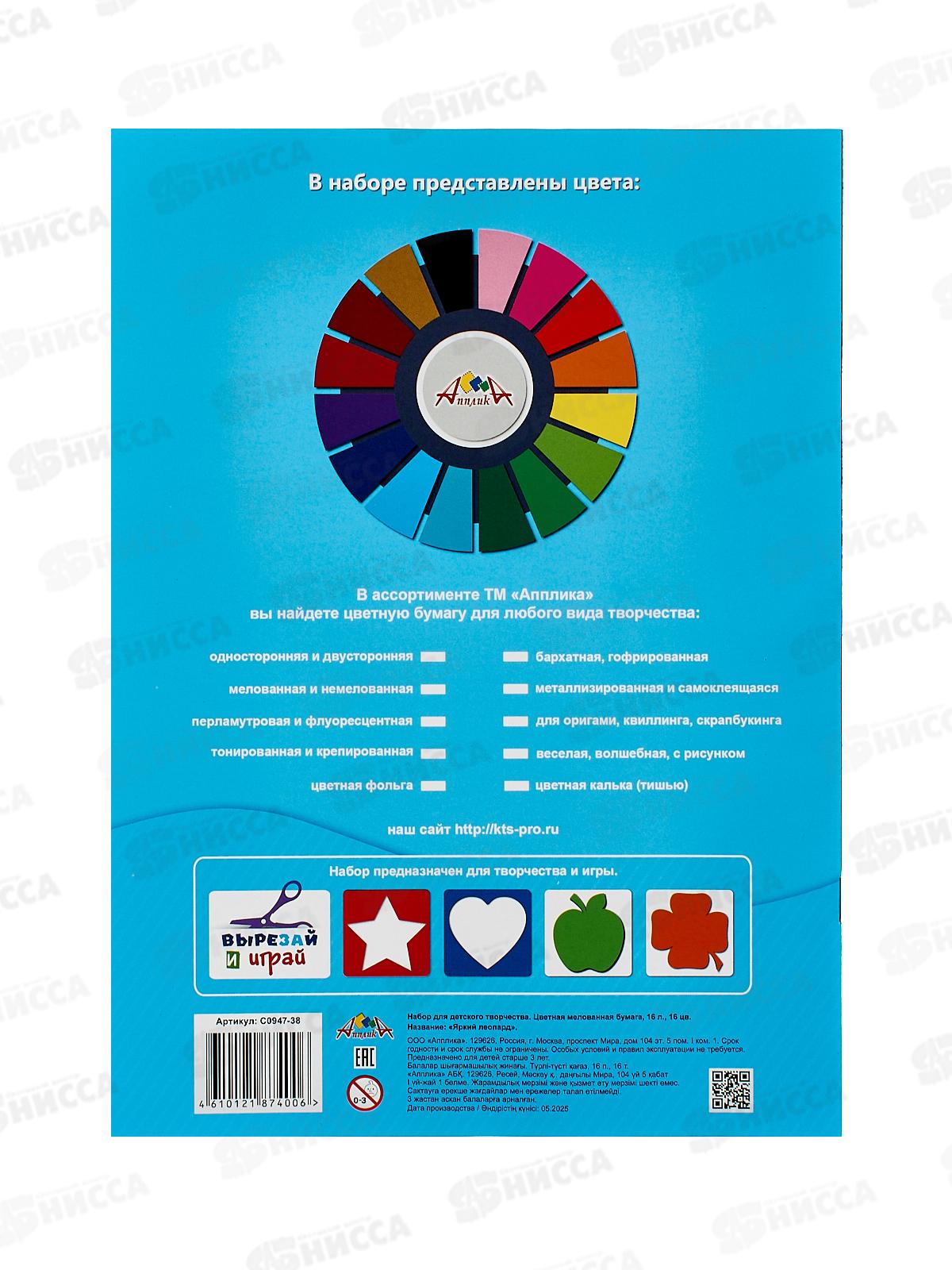Цветная бум. 16л 16цв Апплика Яркий леопард,С0947-38*60