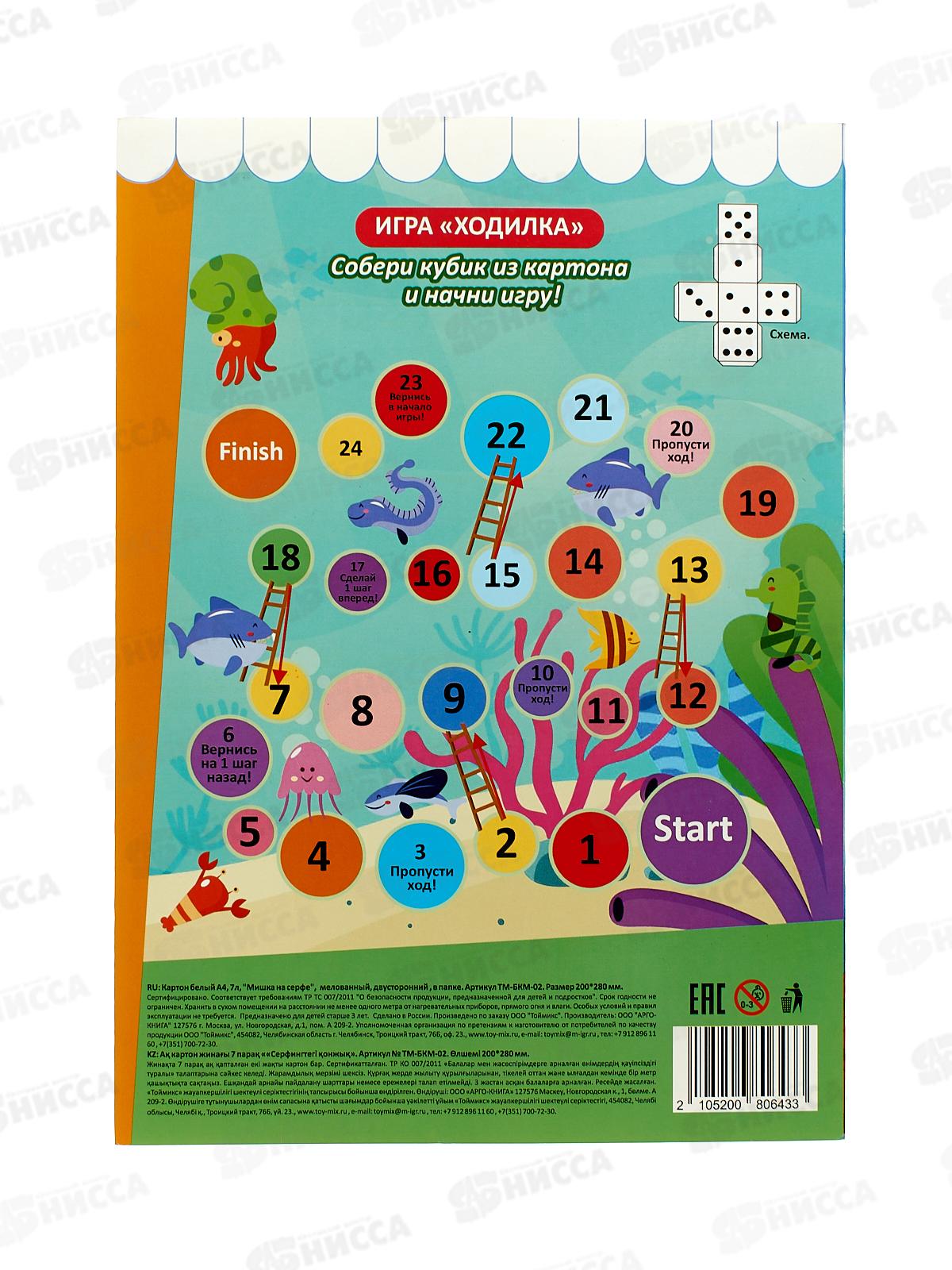 Картон Белый 7л А4 "Мишка на серфе" мелов., двустор. ТМ-БКМ-02