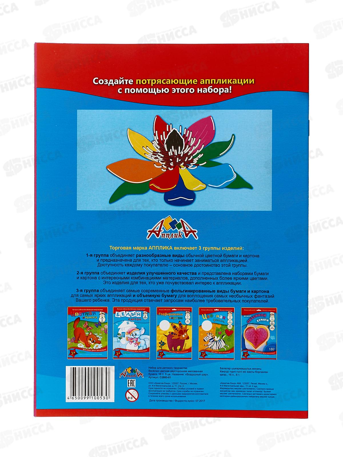 Цветная бум. 16л 8цв Апплика Воздушные шары С2803-01/60
