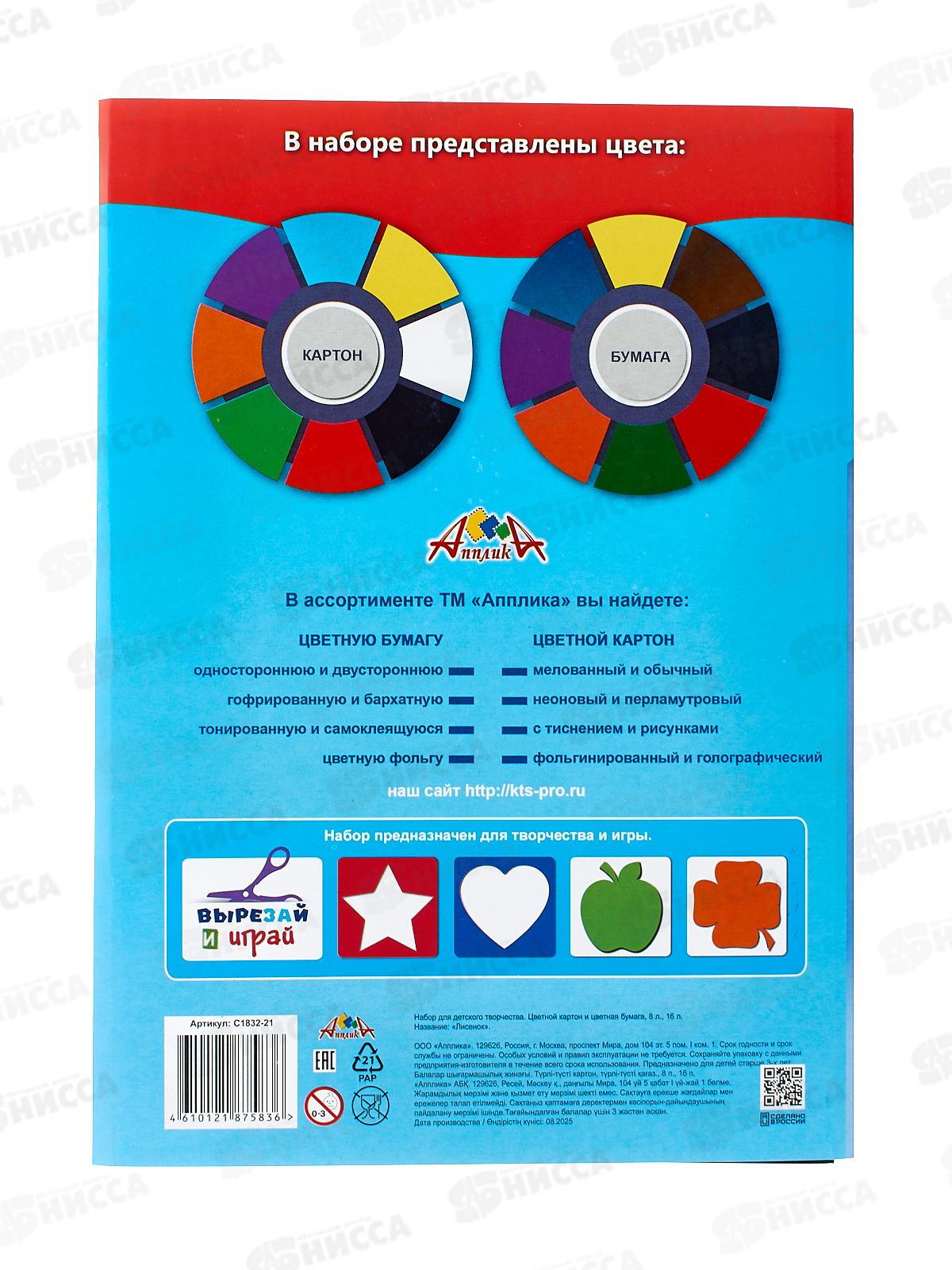 Цветной карт.+цв.бумага А4 Апплика Лисенок, С1832-21*25