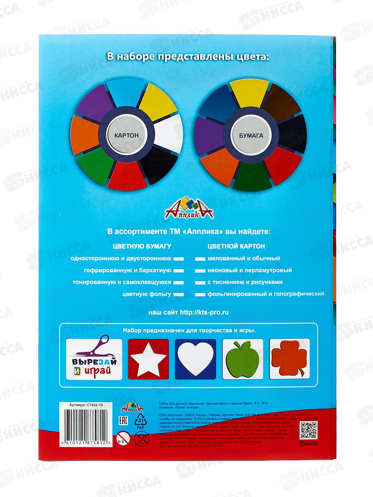 Цветной карт.+цв.бумага А4 Апплика Яракая палитра, С1832-19*25