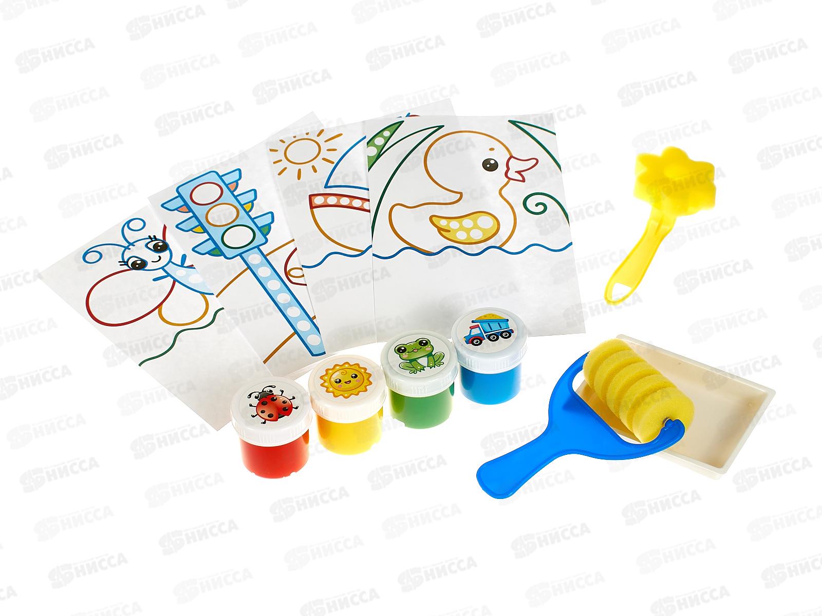Комплектация: краски, 4 раскраски, роллер фигурный, лоток для рисования, спонжик