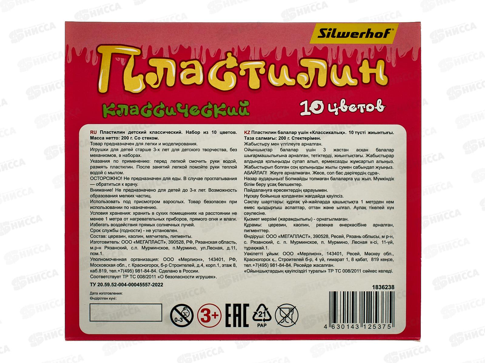 Пластилин 10цв 200г SILWERHOF Монстрики, к/у, стек 1836238 *20