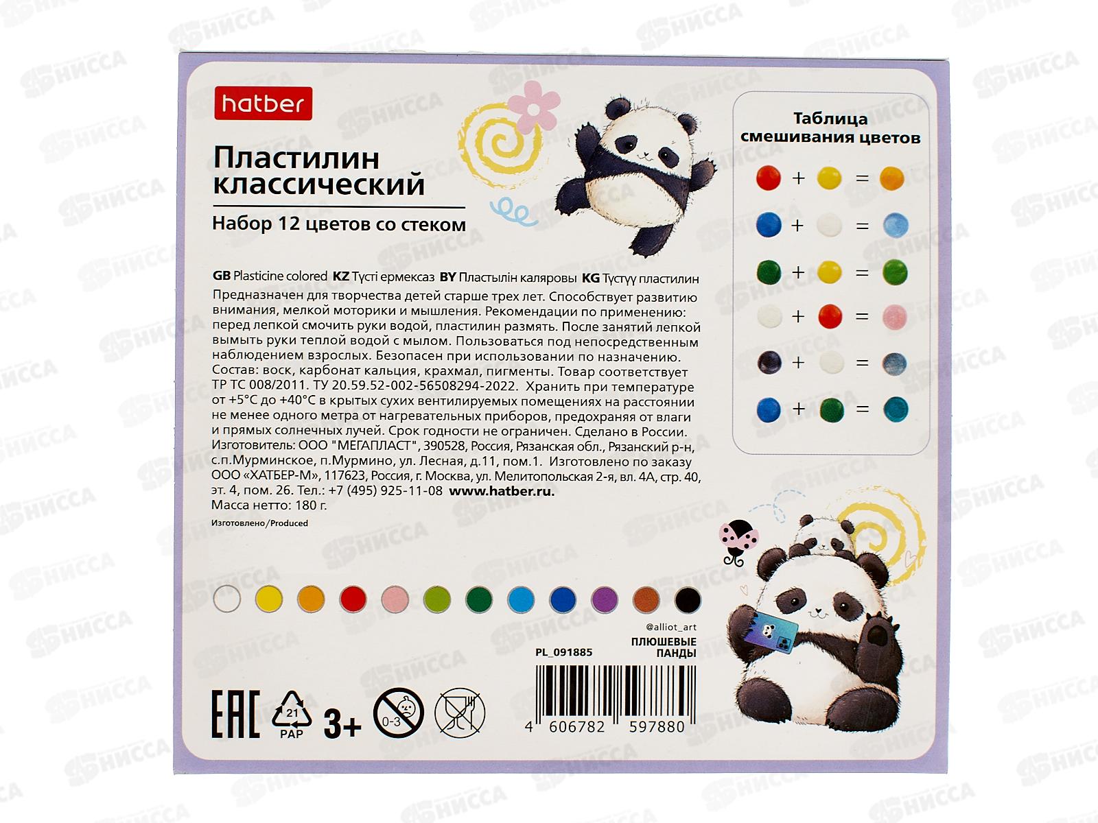 Пластилин 12цв 180г Hatber Плюшевые панды., стек, 091885 *10