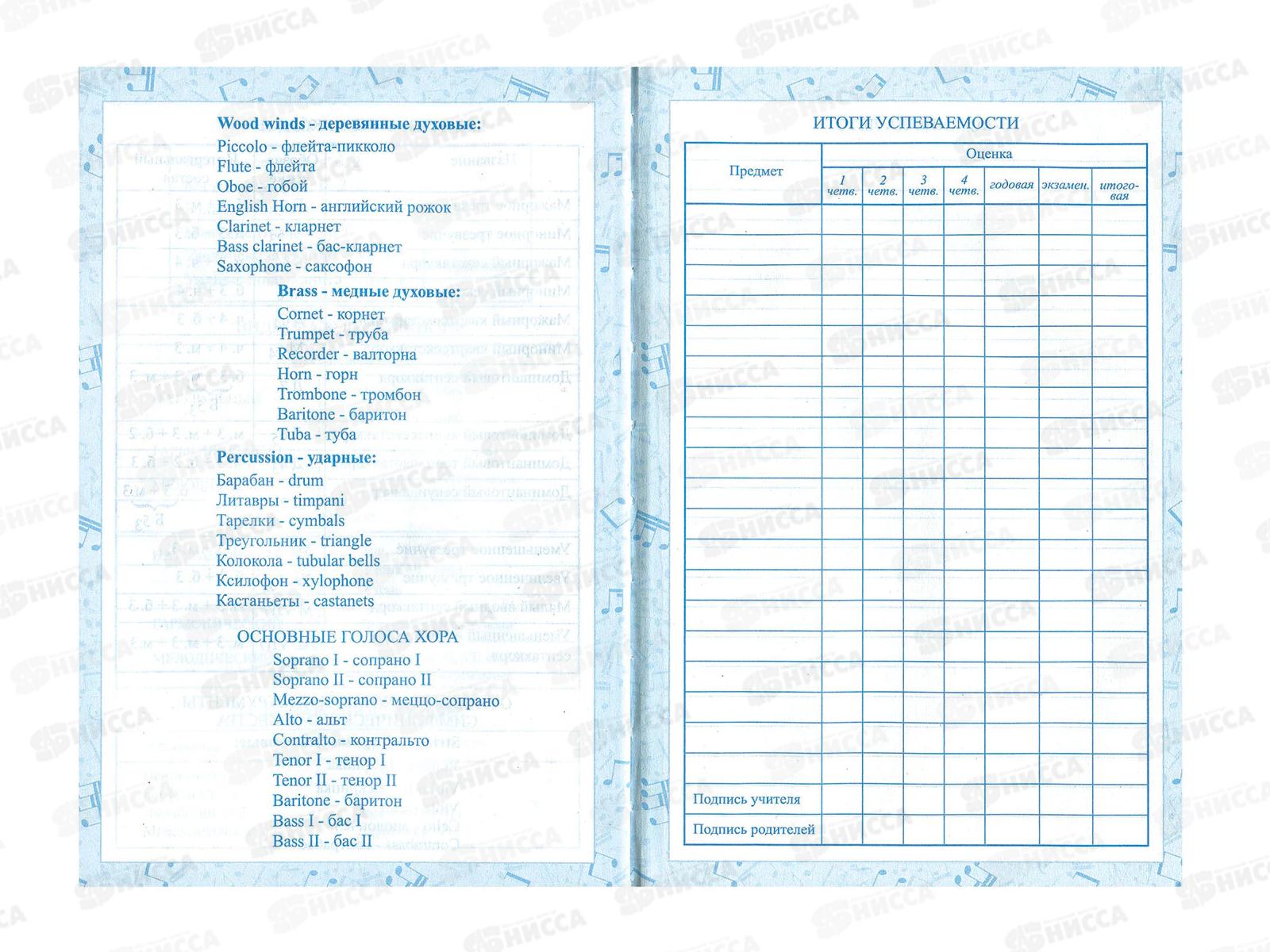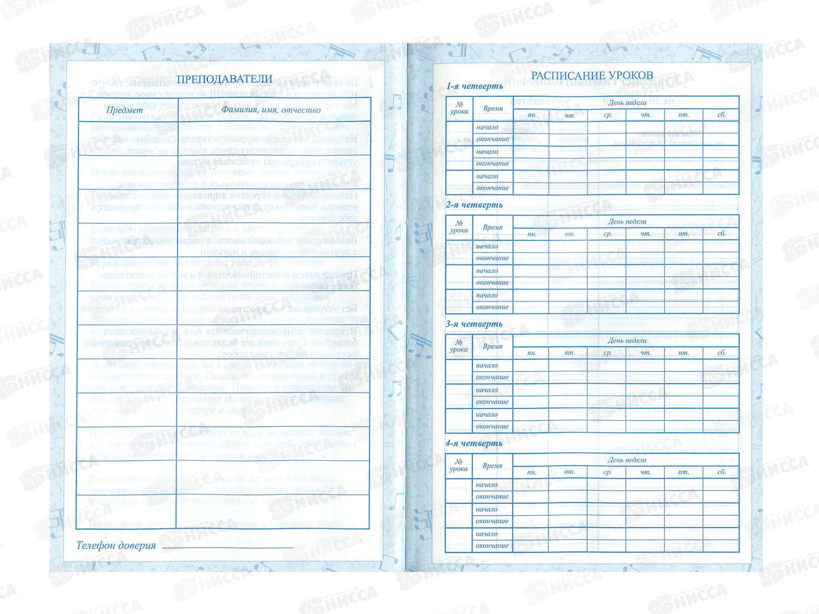 Дневник для музыкальной школы с обложкой элегантного дизайна. Внутренний блок содержит справочную информацию.