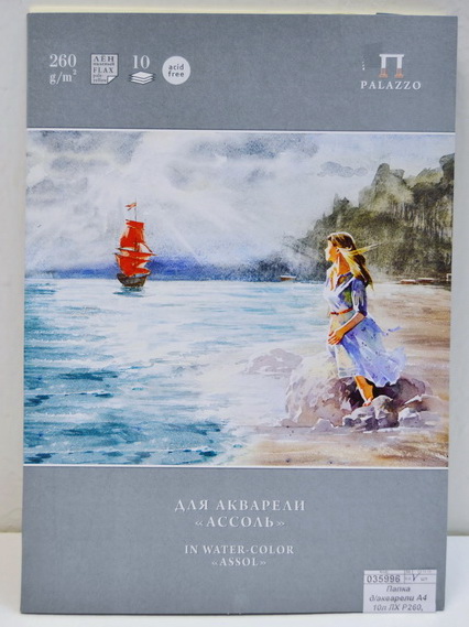 Папка для акварели А4 10листов ЛХ P260, лен, Ассоль, П-1506 *20