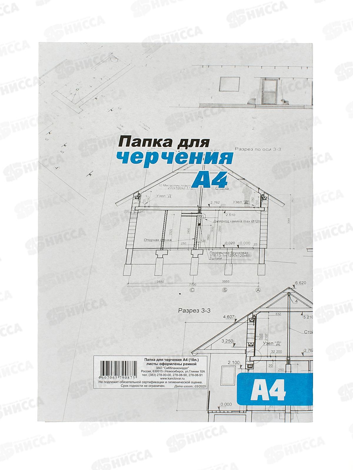 Папка для черчения А4 10 листов СБ рамка вертикальная *20