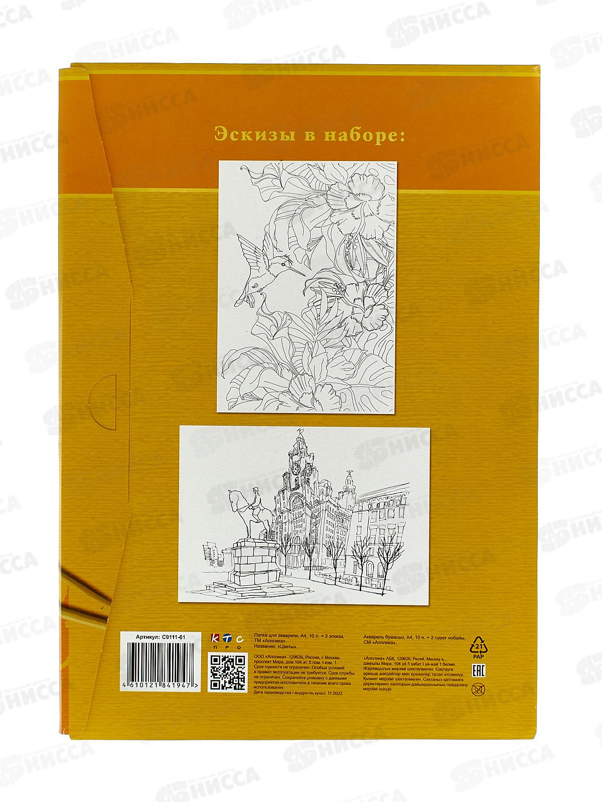 Папка для акварели, 10 листов, формат А4, плотность 180 гр/м2. Внутренний блок - высококачественная акварельная бумага + 2 эскиза.