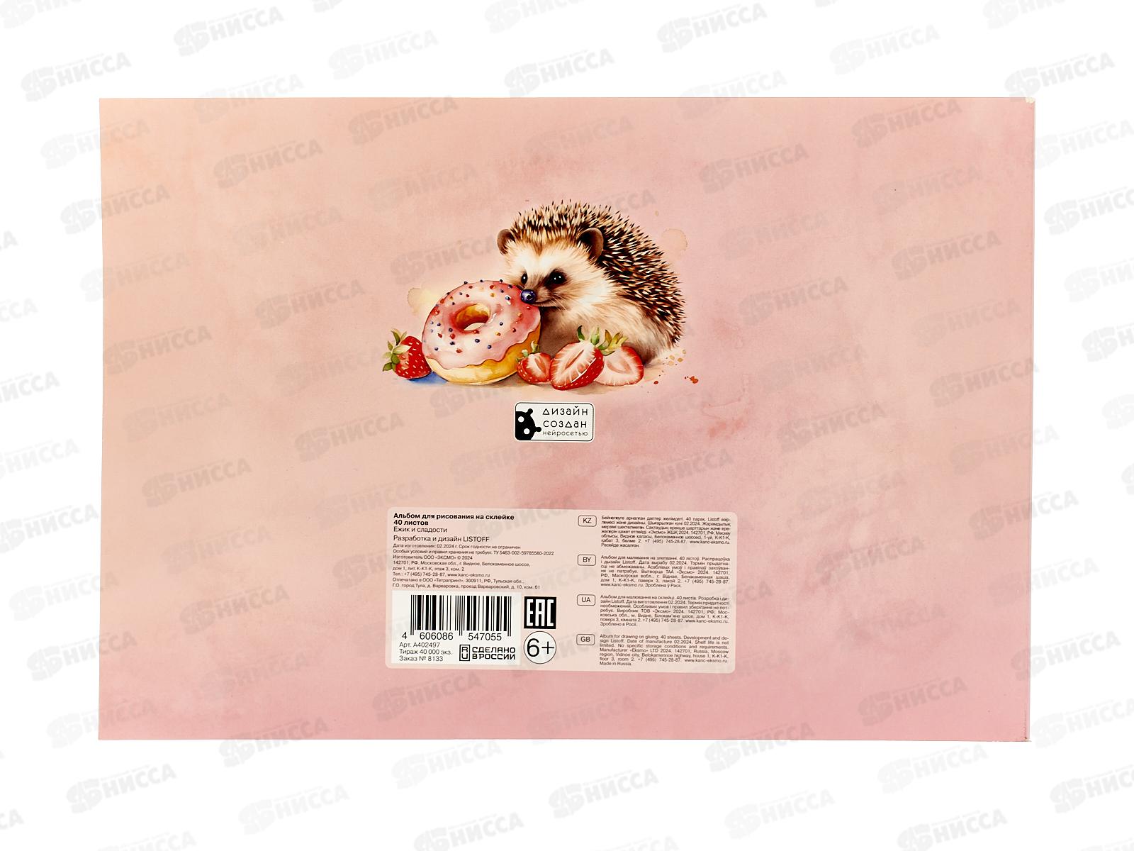 Альбом д/рис.40л ЭКСМ Ежик и сладости, склейка А402497 *40