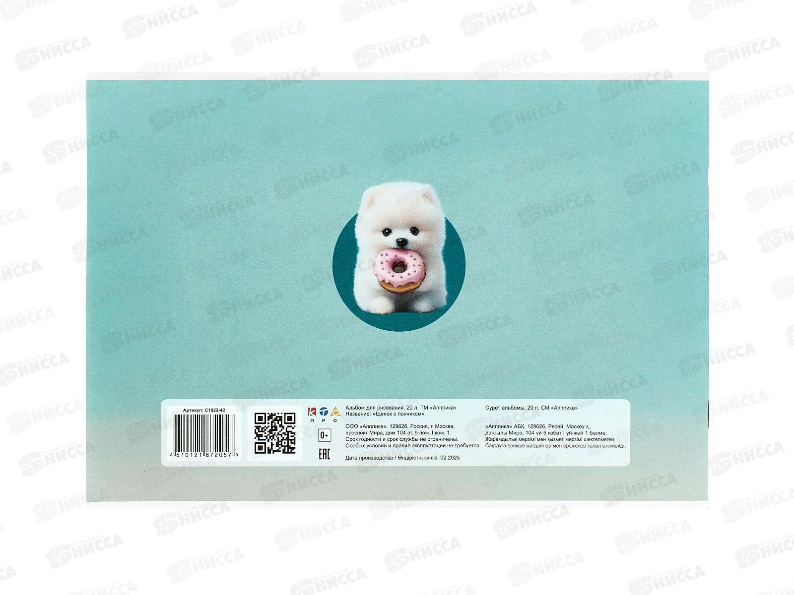 Альбом д/рис.20л Апплика, Щенок с пончиком, офс, С1022-42 *80
