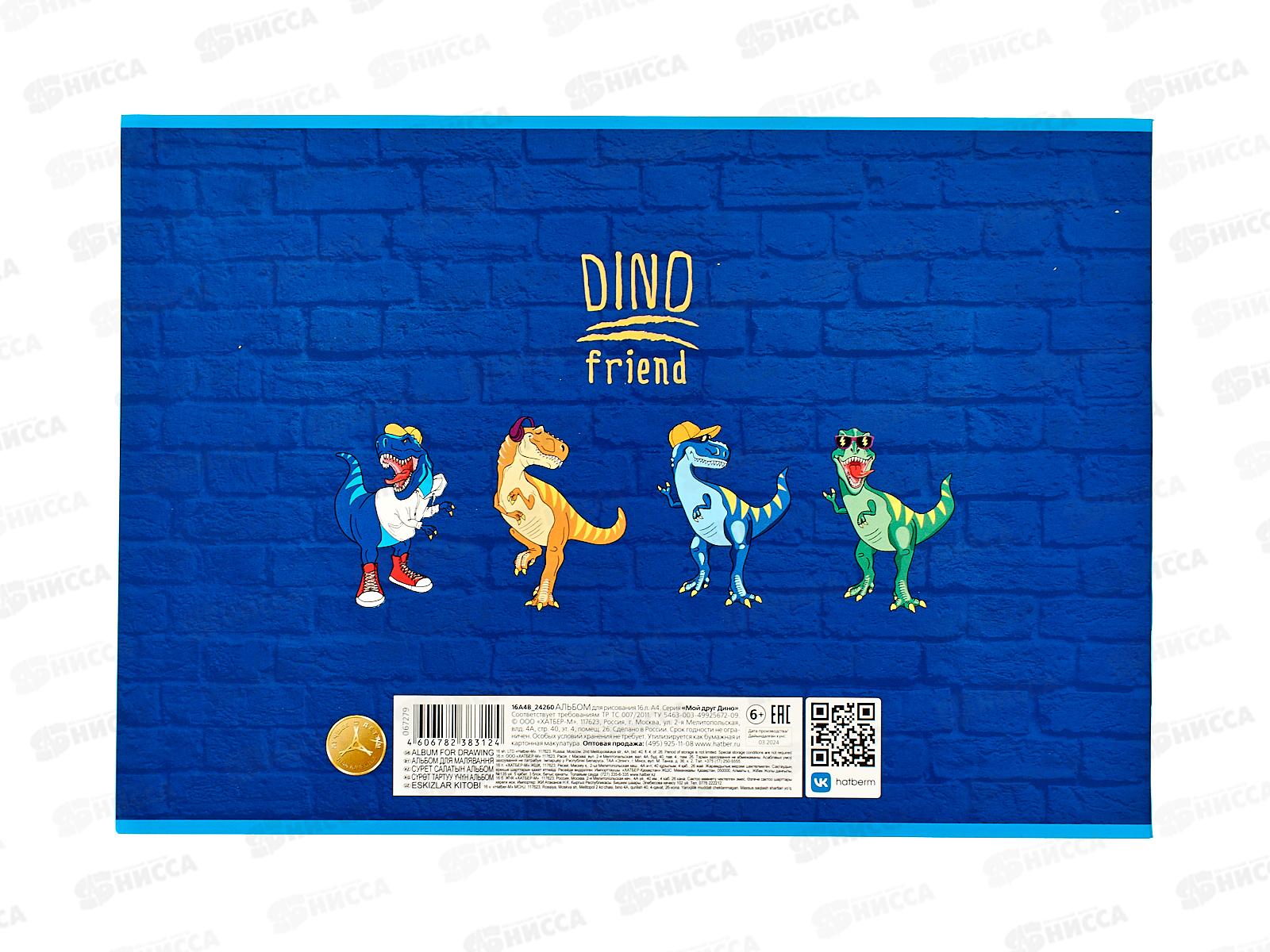 Альбом д/рис.16л Hatber Мой друг Дино, на скобе 16А4В *14