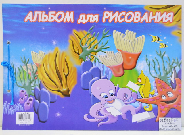 Альбом для рисования 40 листов "Подводный мир" с завязками. Отлично подходит для рисования различными видами красок, фломастерами, гелевыми ручками, чернографитными и цветными карандашами.