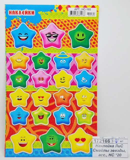 • Наклейка ЛиС Смайлы звезды, в ассортименте, НС *20