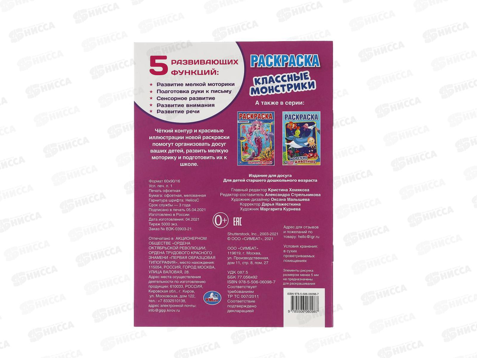 Раскраска "УМКА" 06098-7, Первая раскраска. Классные монстрики. А4*50