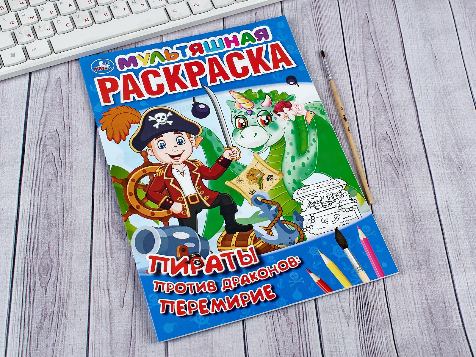 Мультяшная раскраска «Пираты против драконов: перемирие» ТМ «УМка» обязательно понравится маленьким художникам: