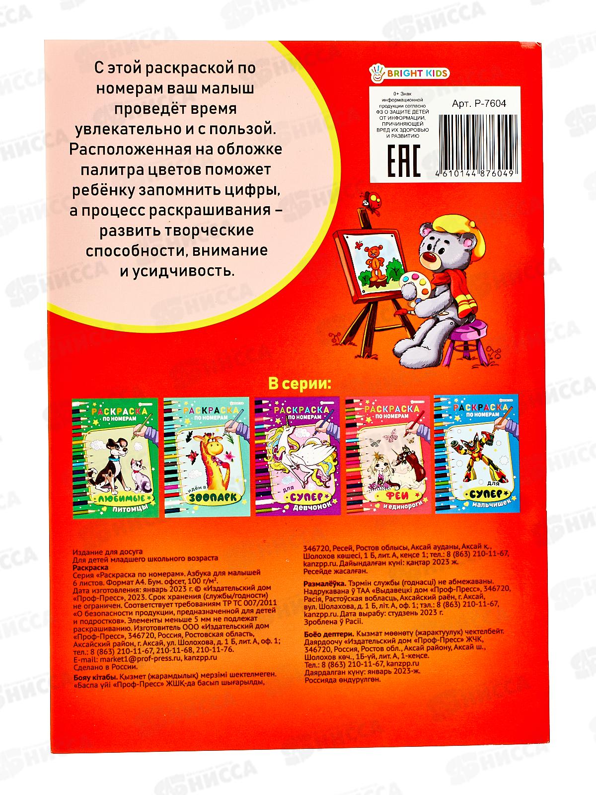 Раскраска по номерам ПП Азбука для малышей, 6л, А4, Р-7604