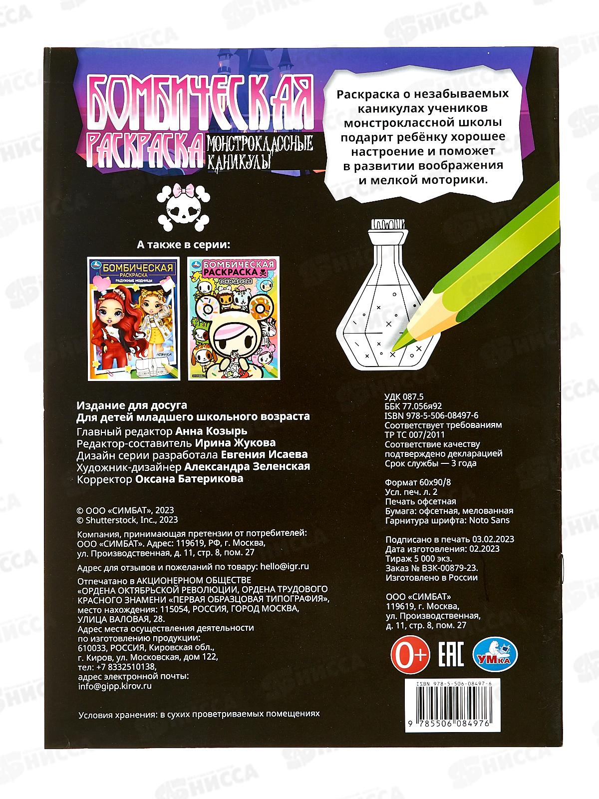 Раскраска "УМКА" 08497-6, Бомбическая. Монстроклассные каникулы *50