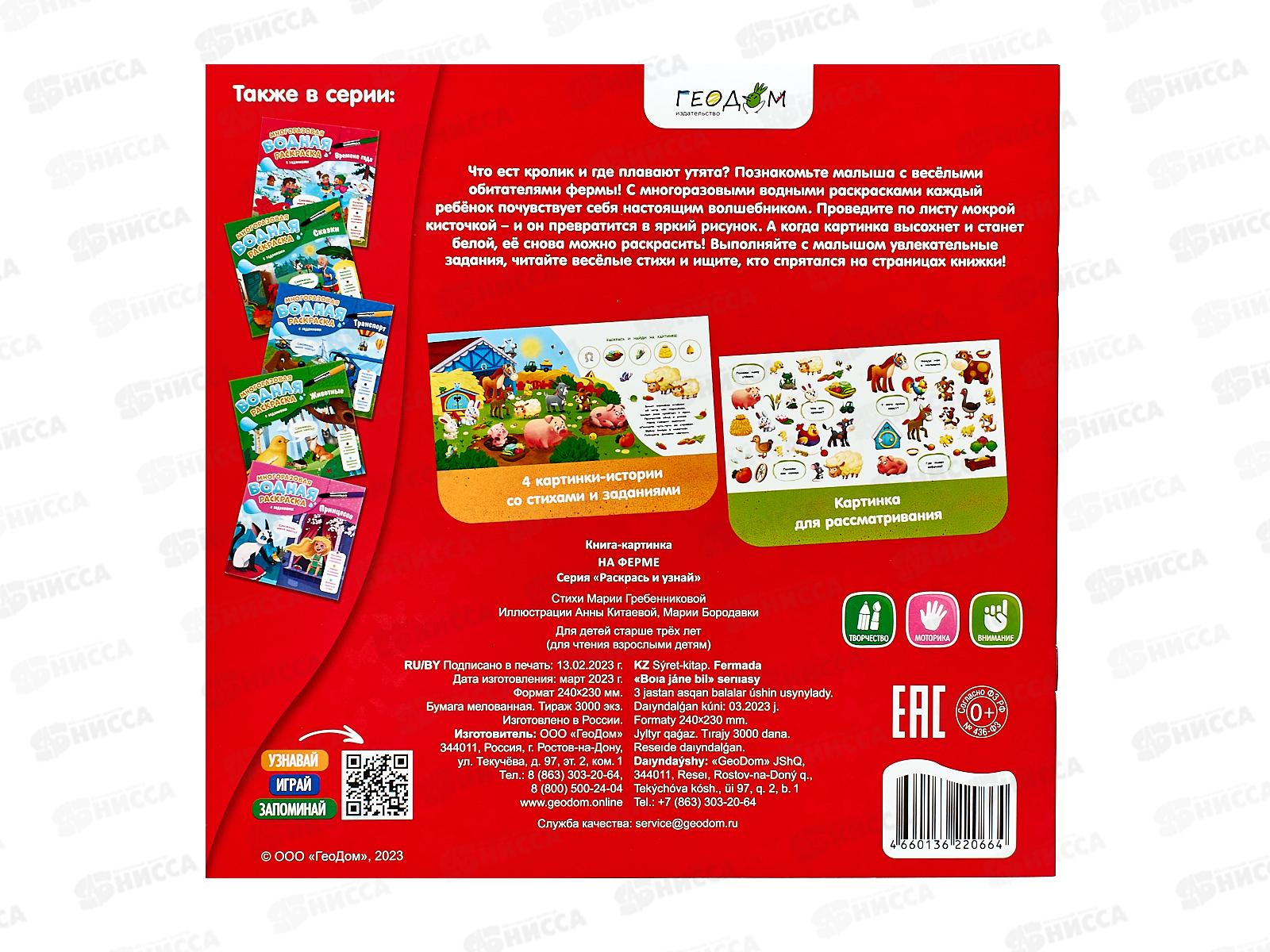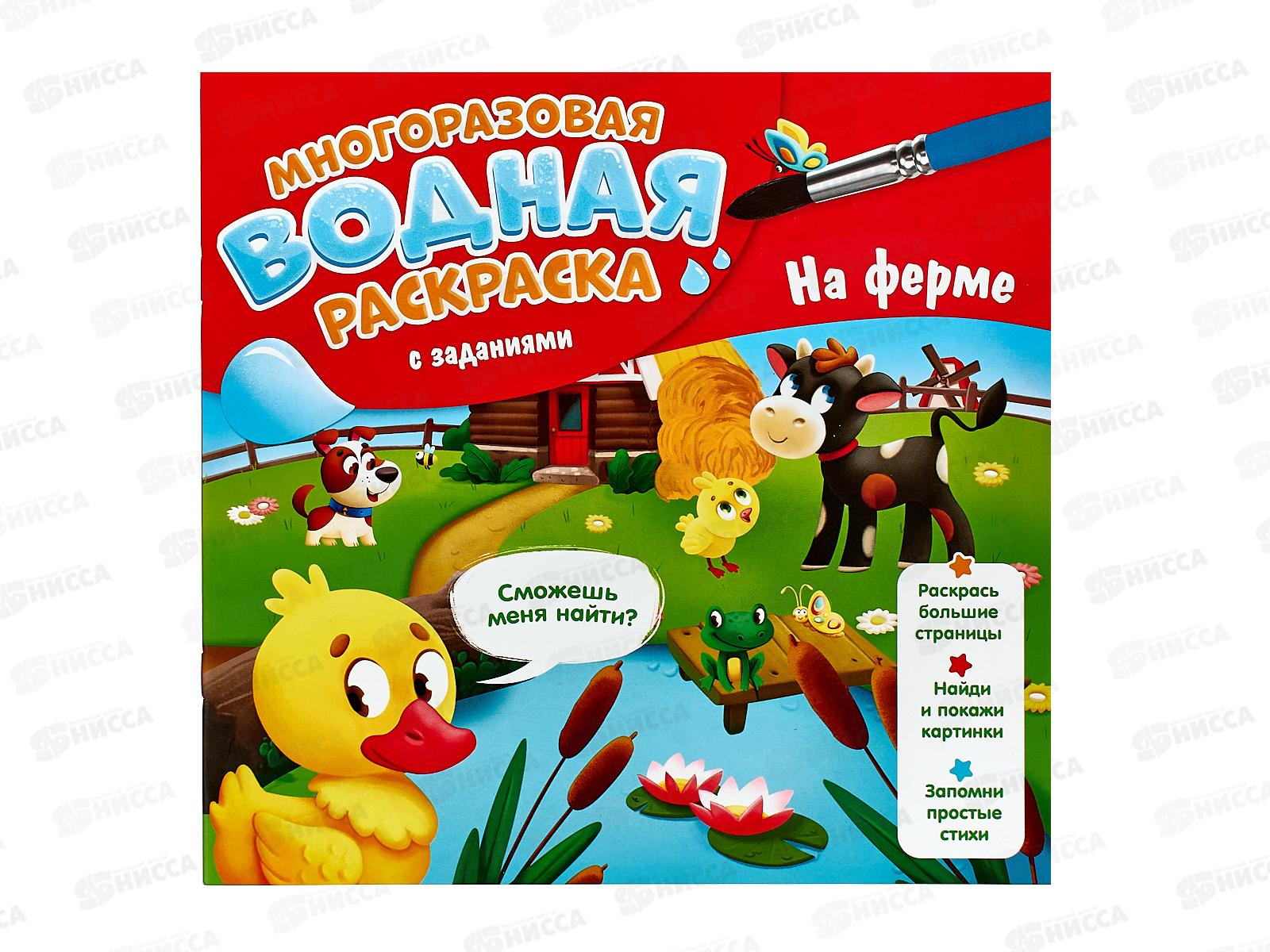 Раскраска водная ГД с заданиями На ферме. 10стр., 24х23см, 20664