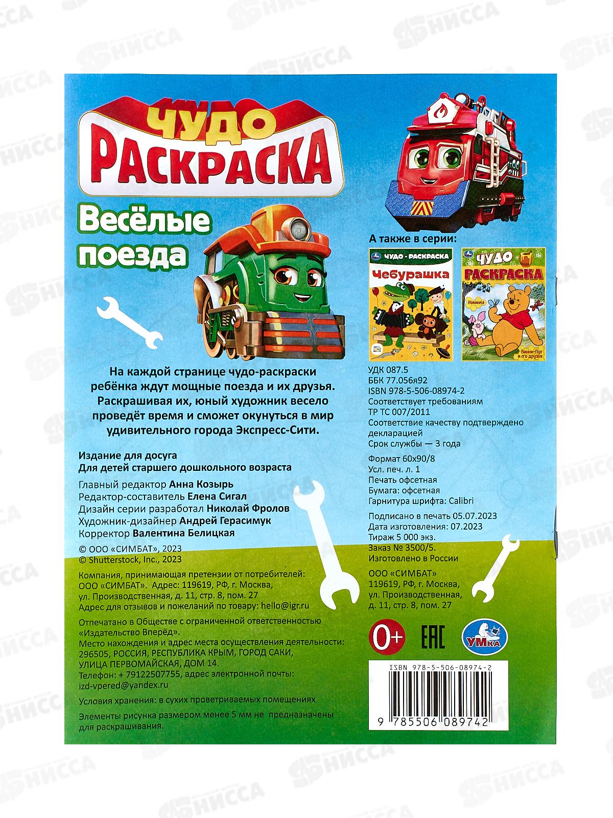 Раскраска "УМКА" 08974-2, Весёлые поезда. Чудо 214х290мм 8стр.*50