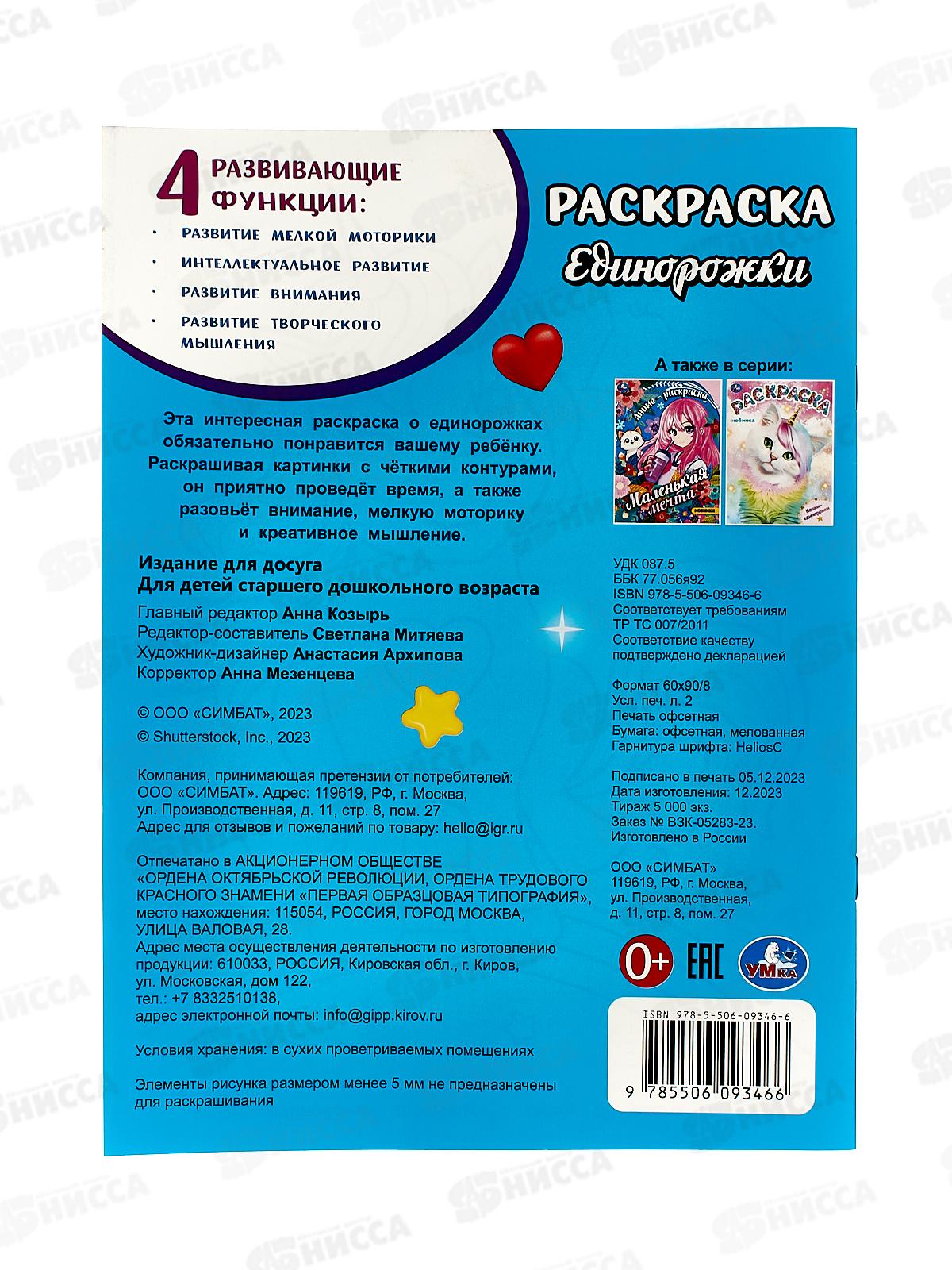 Раскраска «Единорожки» ТМ «УМка» - отличный подарок для юных художников: