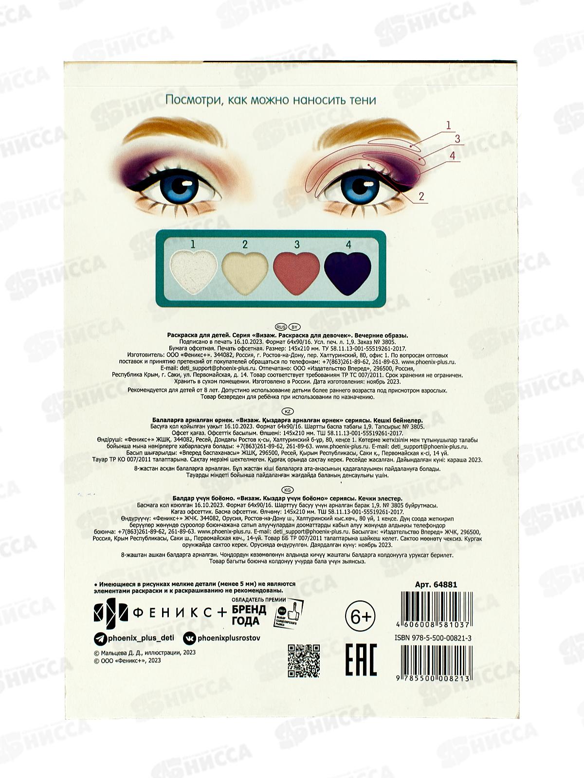 Раскраска ФЕН Визаж.д/девочек Вечерние образы,64881*50