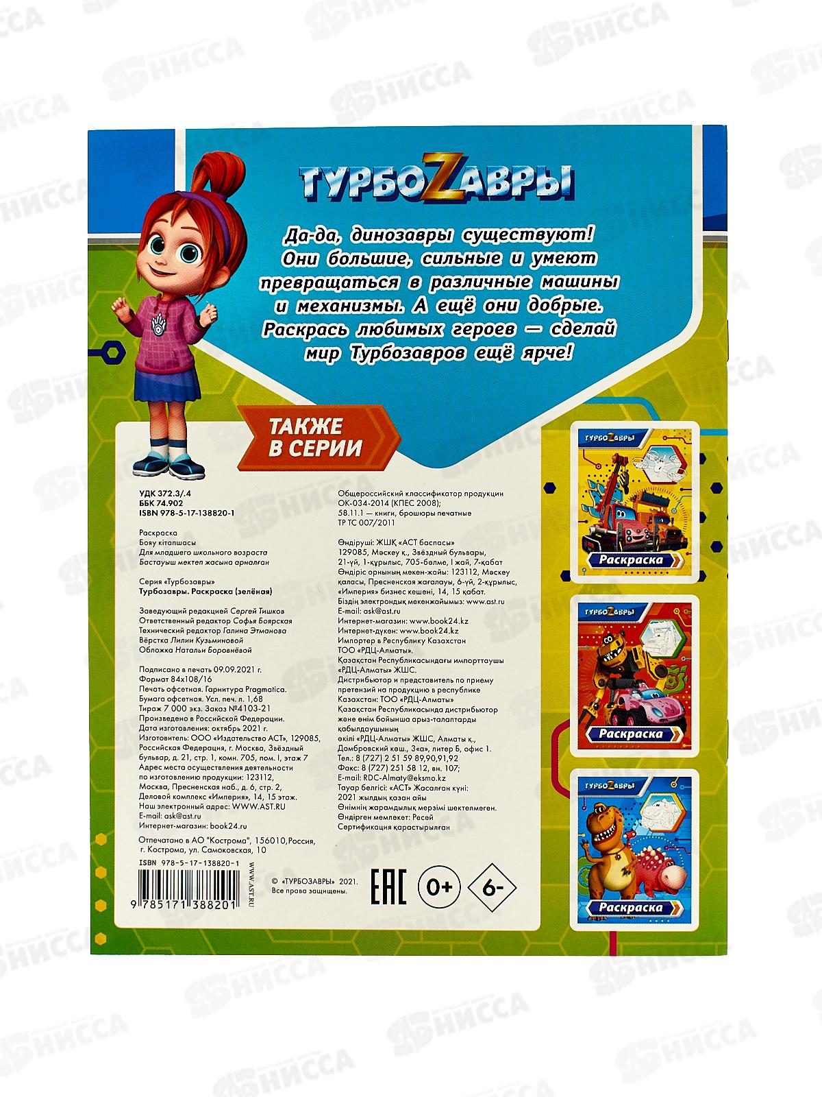 Раскраска АСТ Турбозавры (зелёная), 8820-1 *50