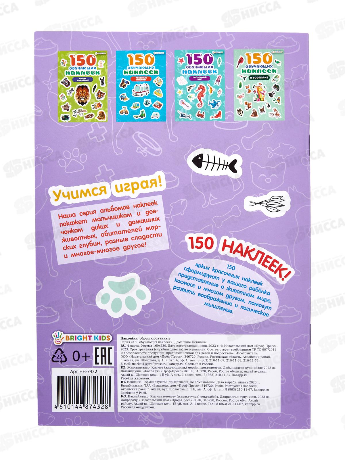 Обучающие наклейки ПП Домашние любимцы 150шт НН-7432 4л