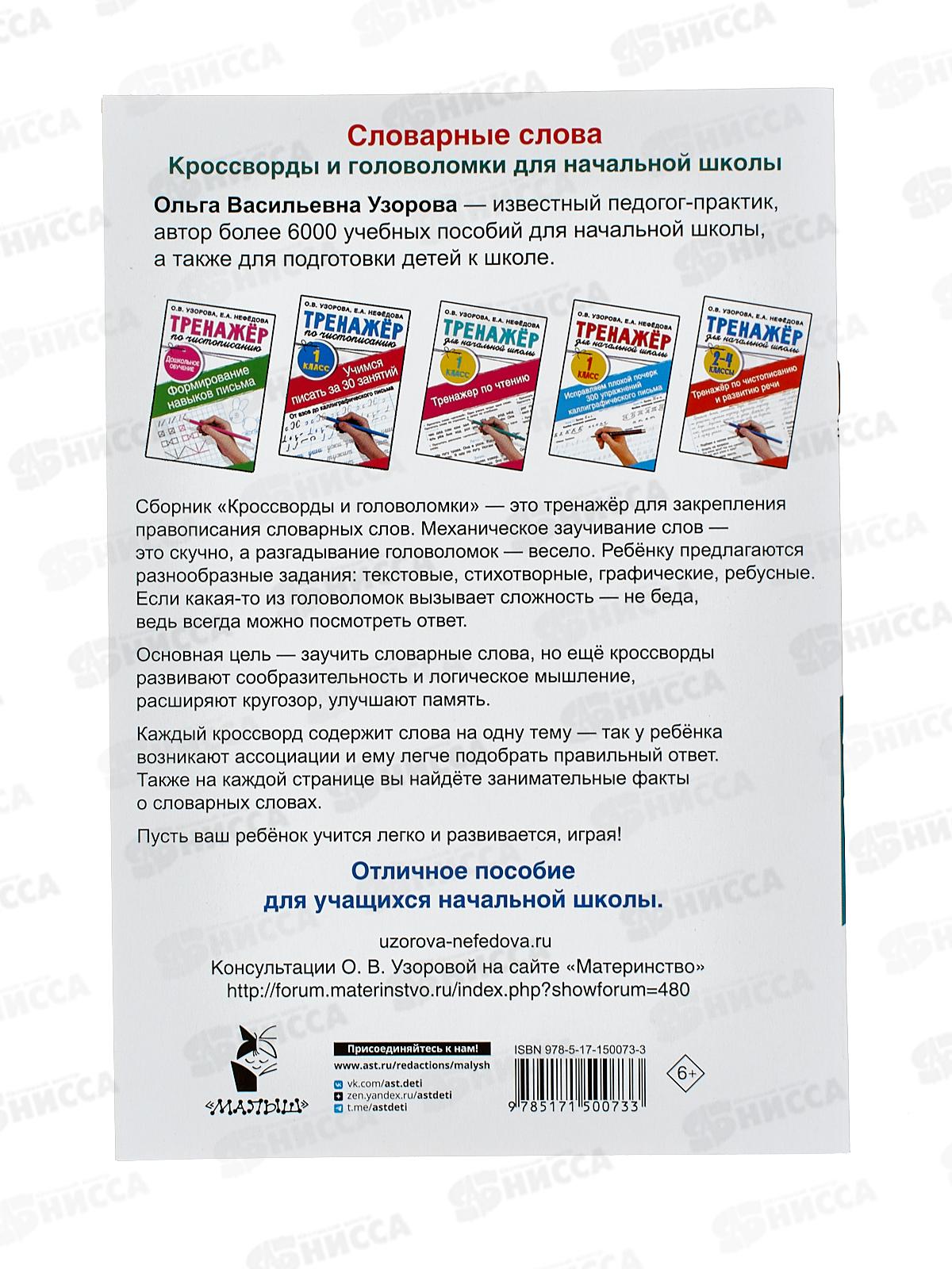 Тренажер АСТ словарные слова. Кроссворды и головоломки для начальной школы, Узорова О.В., 0073-3 *40