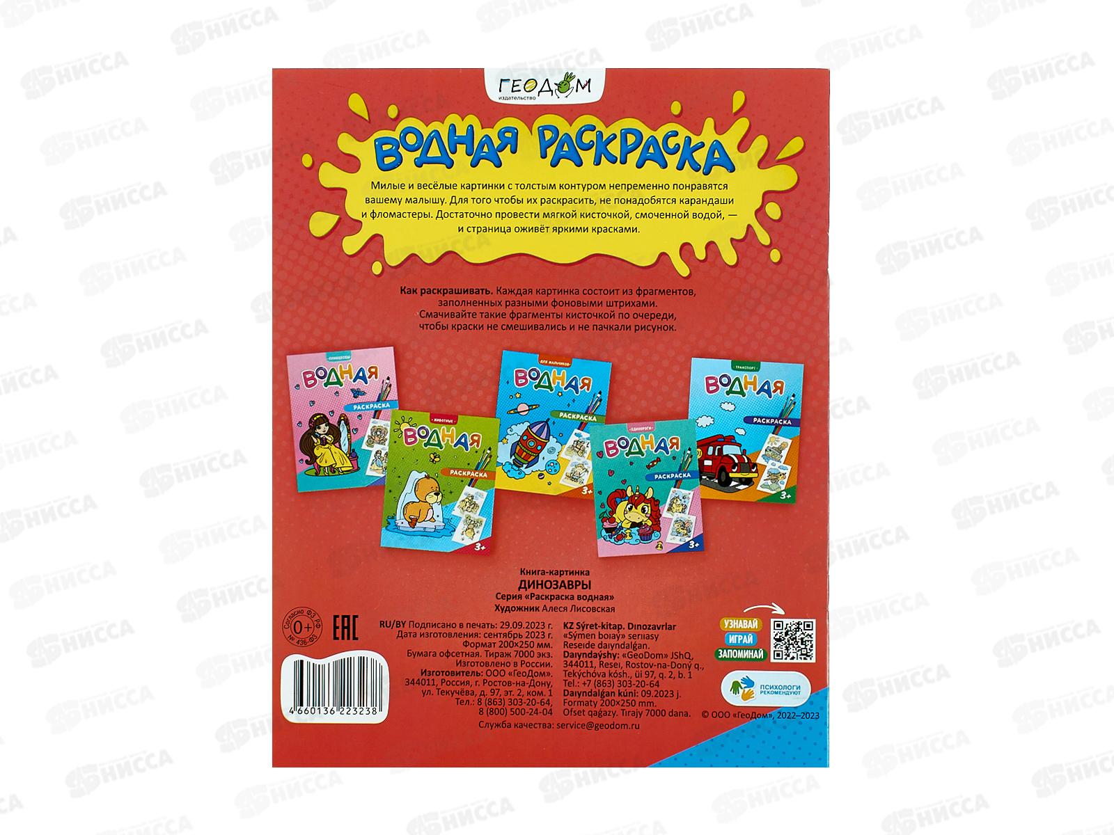 Раскраска водная ГД Динозавры. 6л., 20*25см, 23238