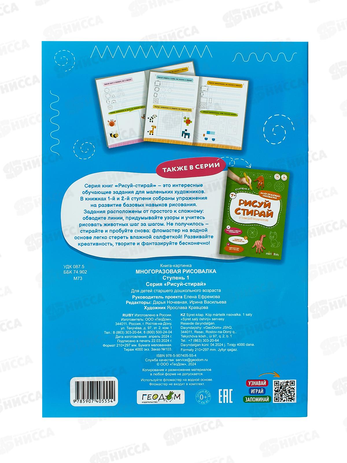 Раскраска ГД многоразовая. Рисуй-стирай.1 ступень.А4 8стр, 05554