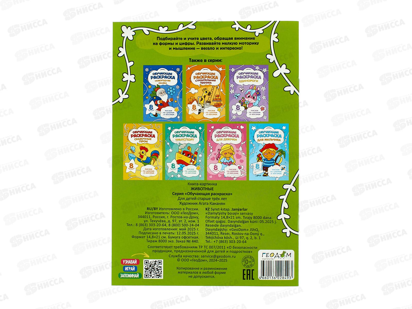 Раскраска ГД по цифрам и фигурам. Животные, 8стр., 14,8*21см, 28493