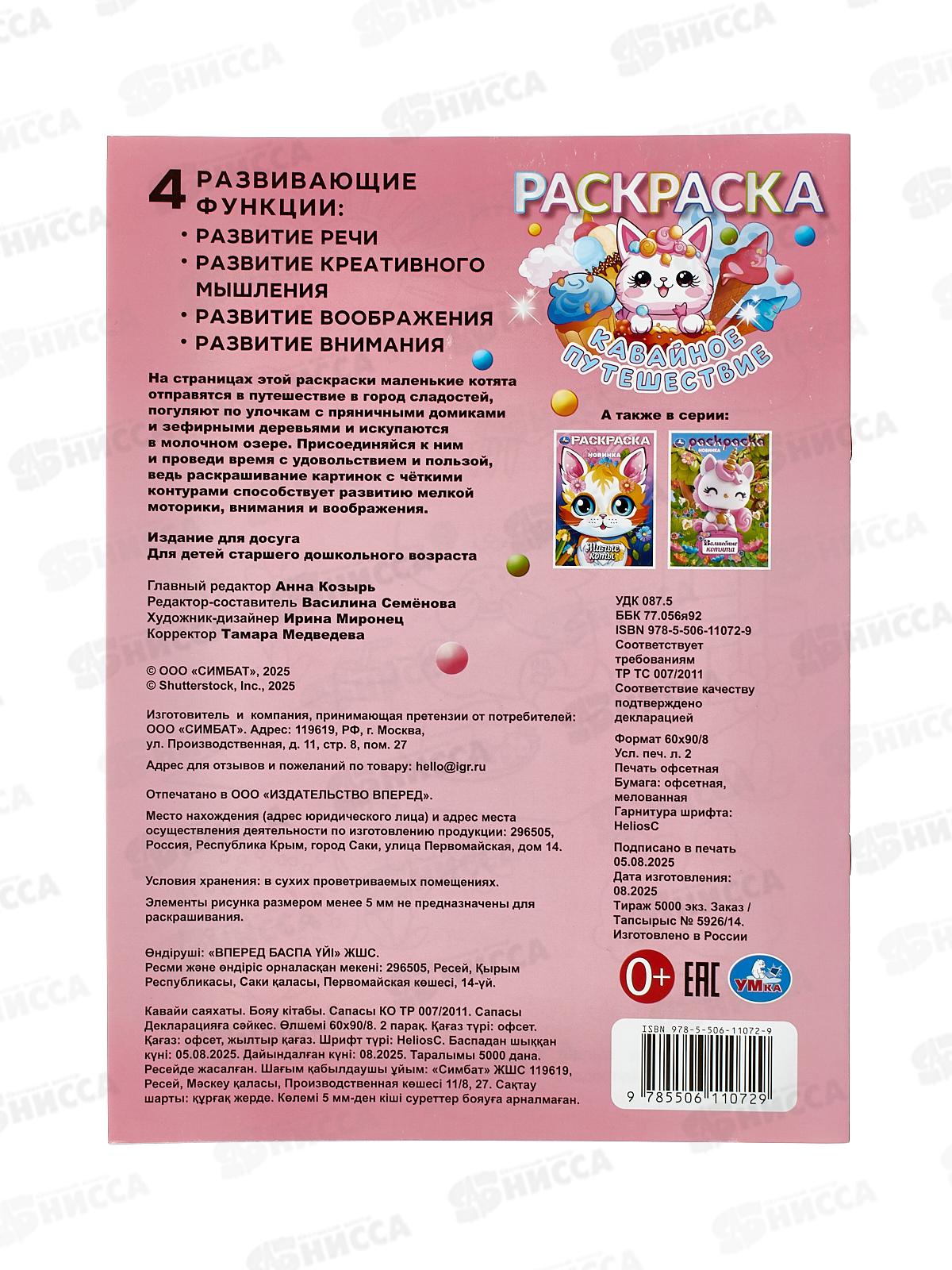 Раскраска "УМКА" 11072-9, Кавайное путешествие, 214х290мм 16стр. *50