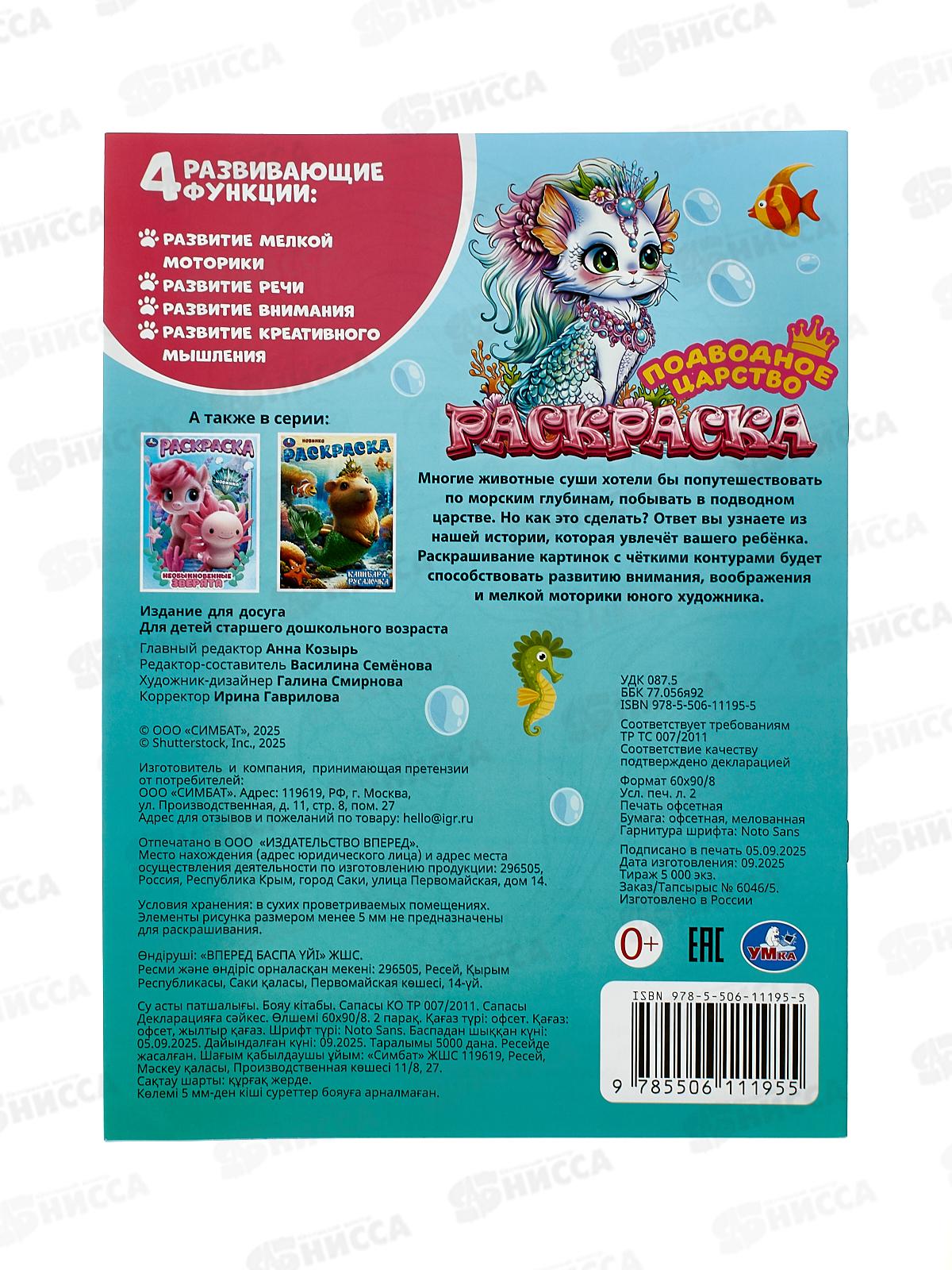 Раскраска "УМКА" 11195-5, Подводное царство, 214х290мм 16стр.*50