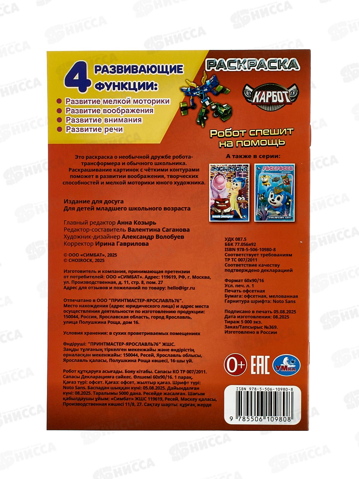 Раскраска "УМКА" 10980-8, Робот спешит на помощь.КАРБОТ, 145х210мм *50