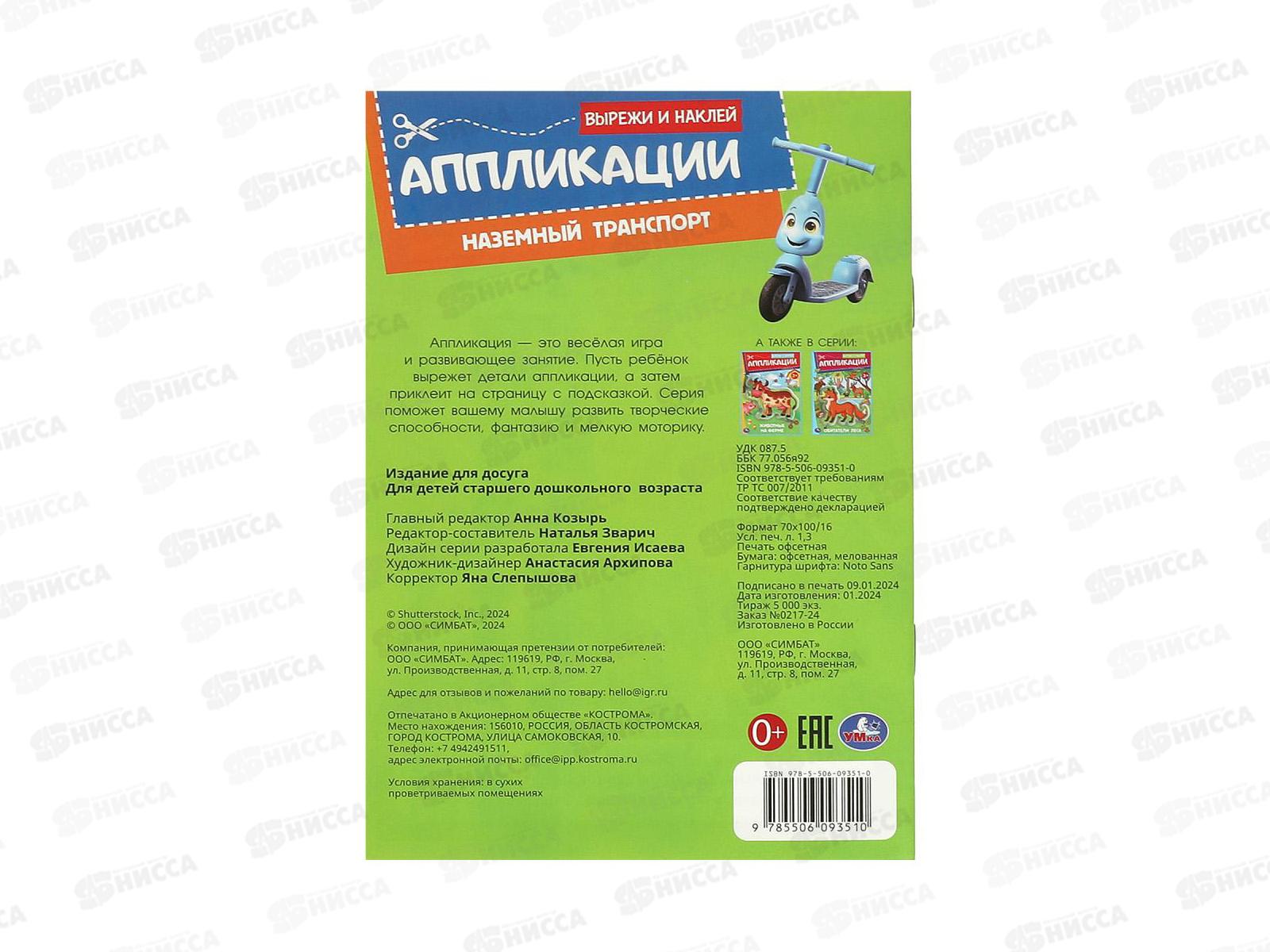 Аппликация "УМКА" 09351-0 Наземный транспорт. 162х235мм, 16стр. *50